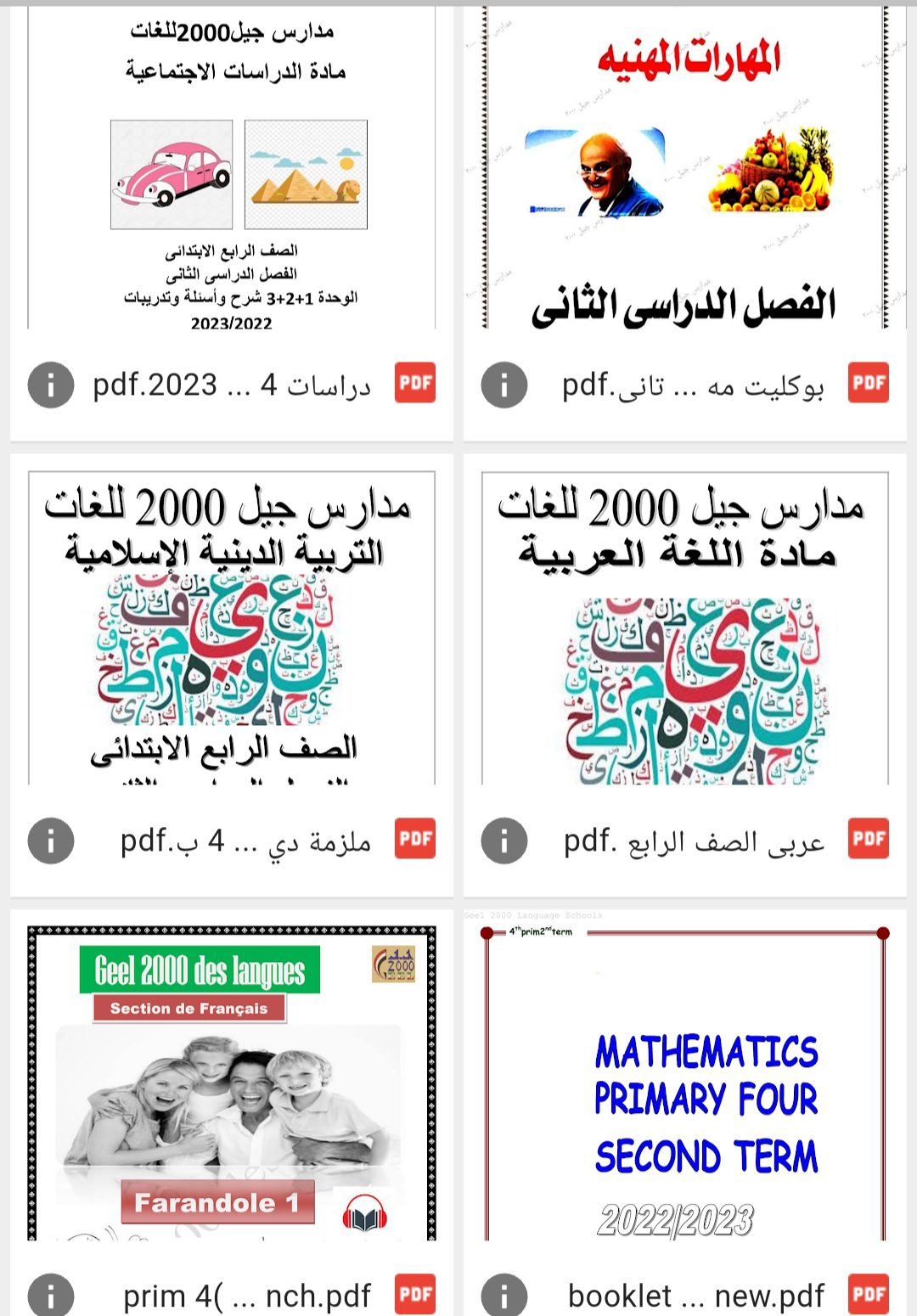 بوكليت كل مواد الصف الرابع الابتدائي الترم الثاني 2023