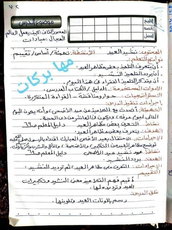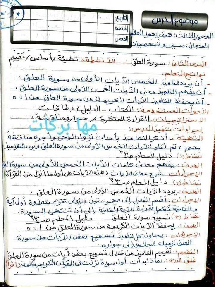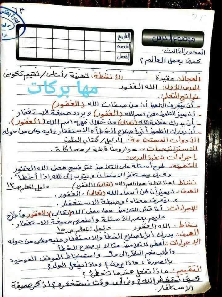 تحميل تحضير التربية الاسلامية الصف الاول الابتدائي الترم الثاني 2023