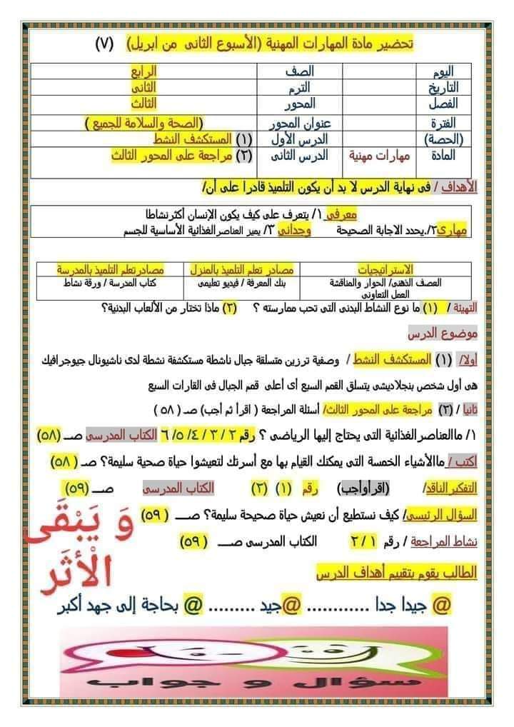 تحميل تحضير المهارات المهنية الصف الرابع الابتدائي الترم الثاني 2023