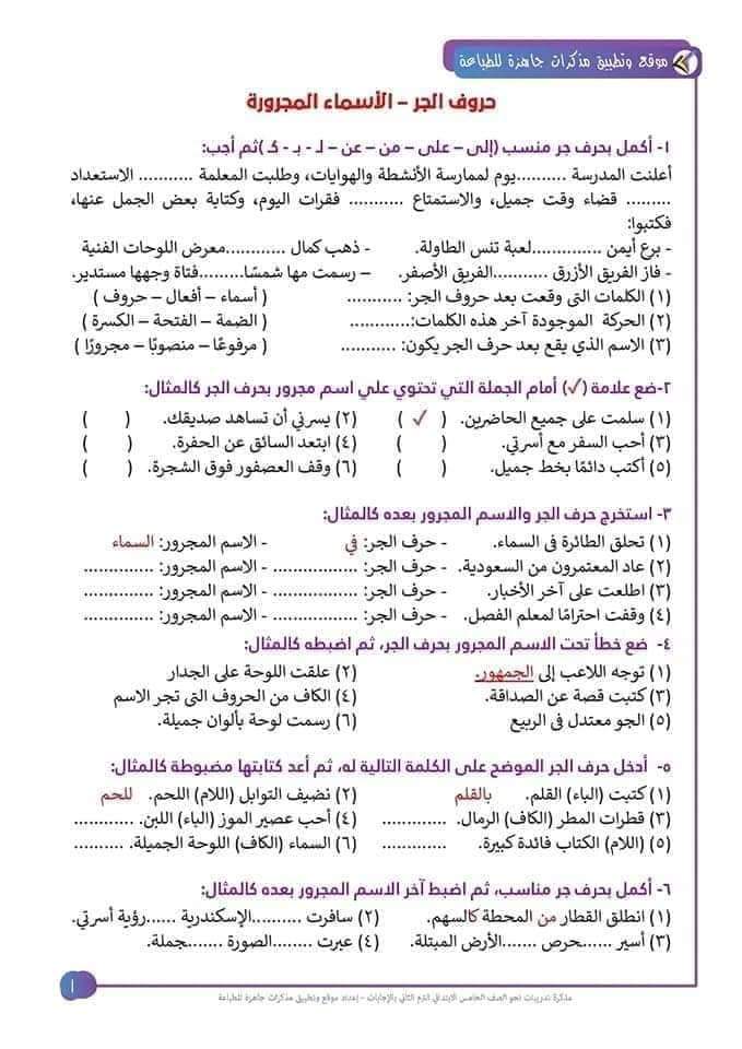 نحو الصف الخامس الابتدائي تدريبات+الإجابة