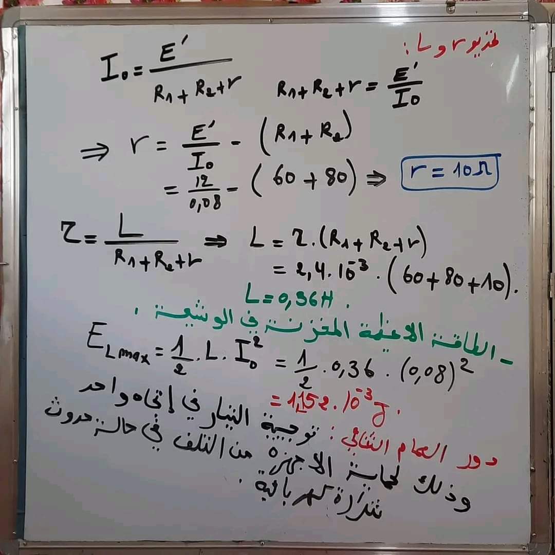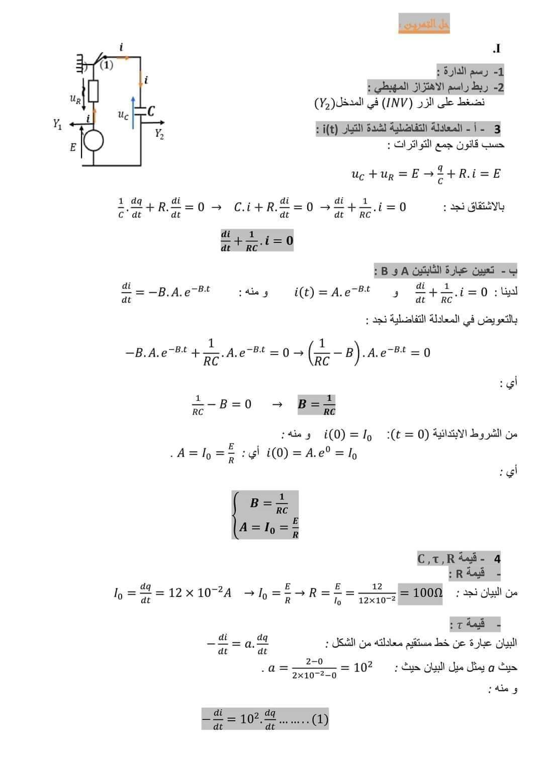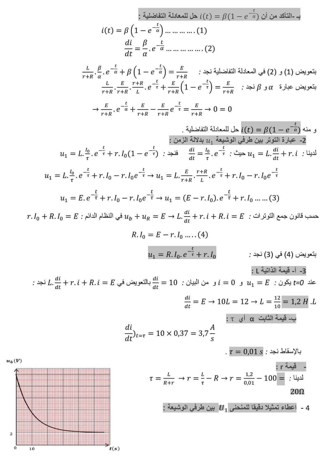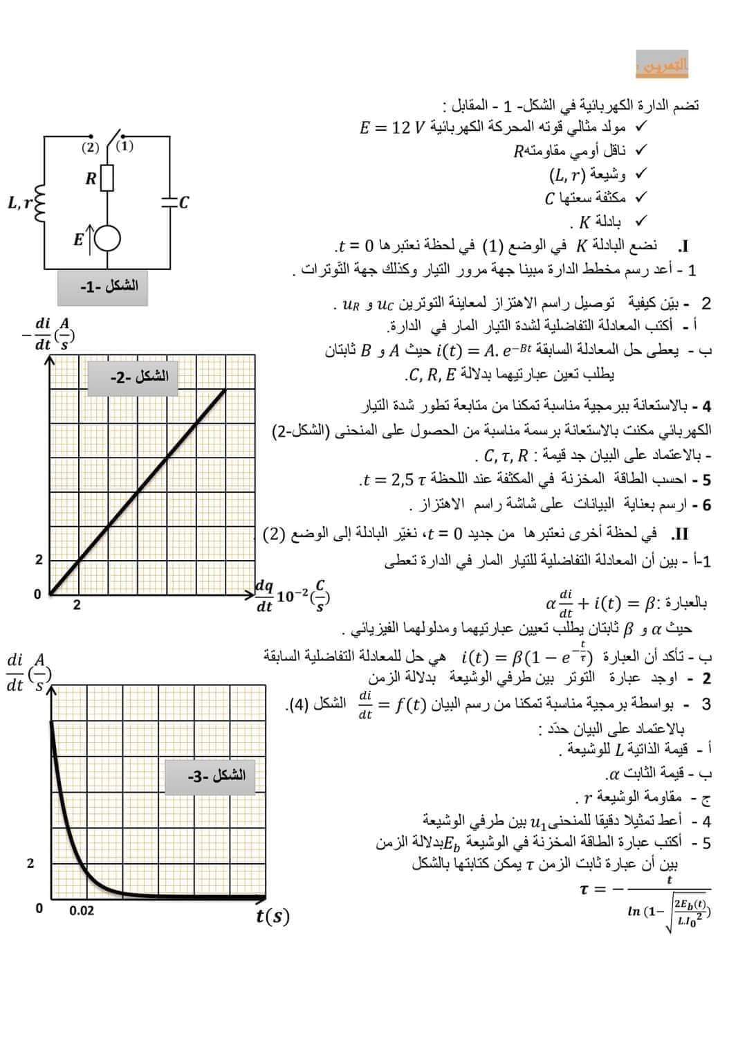 تمرين مقترح في الظواهر الكهربائية ( 2023 ) مع الحل المفصل .