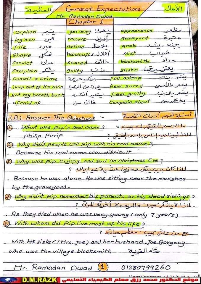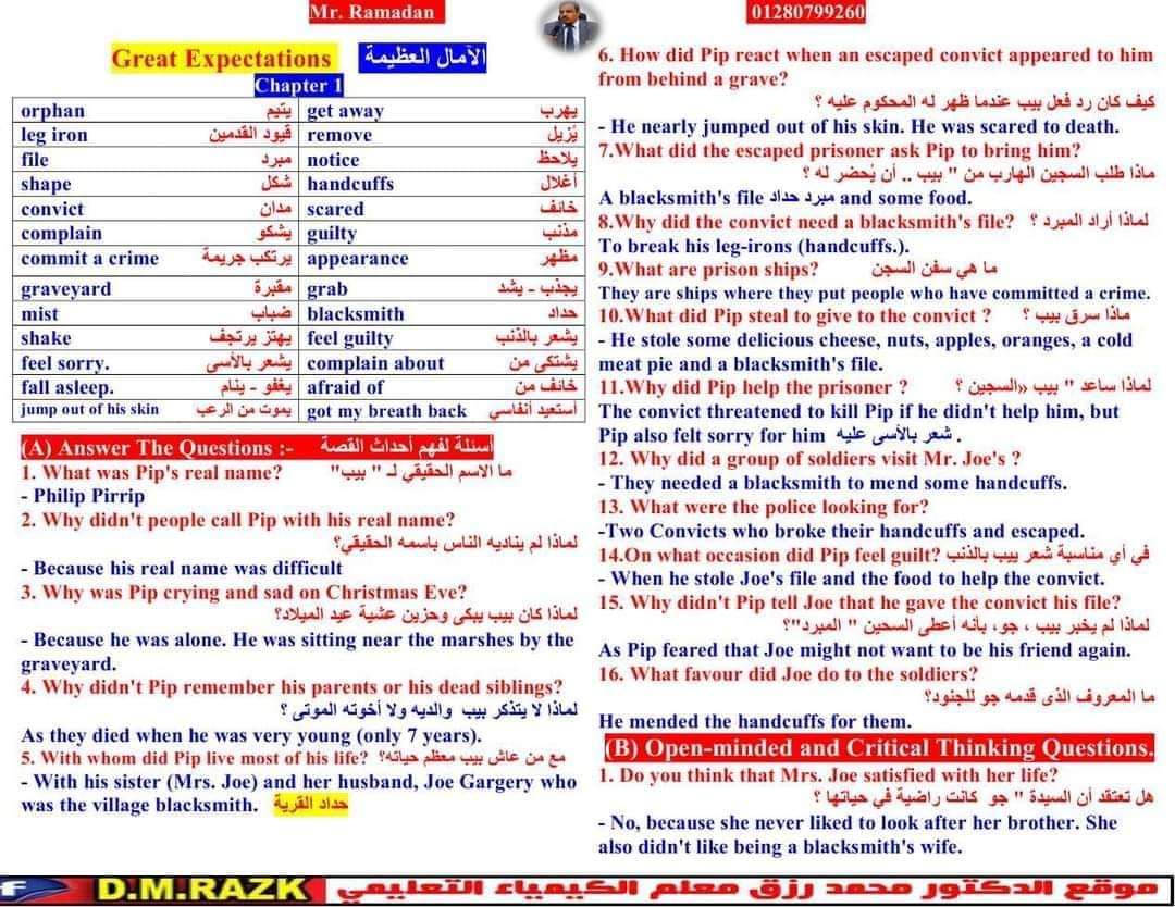 تحميل تلخيص الفصل الأول (قصة الإنجليزي) تالتة ثانوي بالمواصفات الجديدة