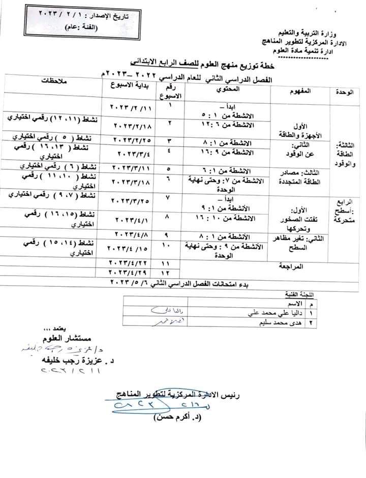 تحميل توزيع مقرر منهج العلوم رابعة ابتدائي الترم الثاني 2023
