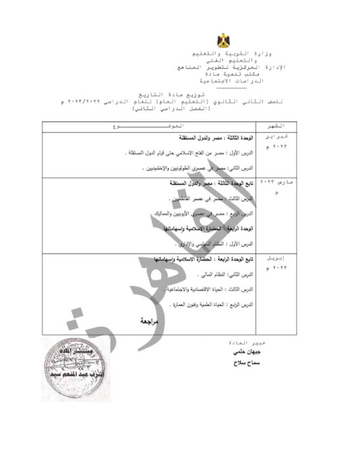 تحميل توزيع منهج الجغرافيا والتاريخ الصف الثاني الثانوي الترم الثاني 2023