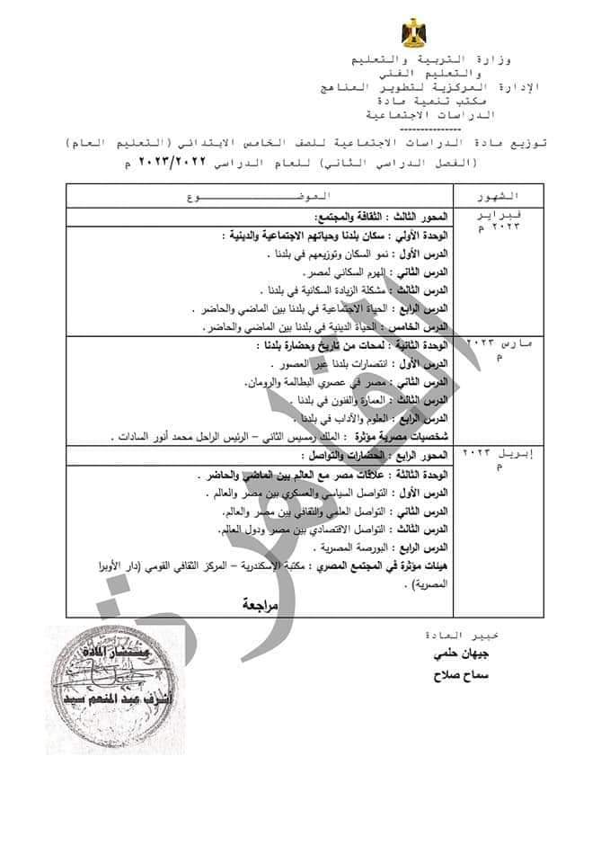 تحميل توزيع منهج الدراسات الصف الخامس الابتدائي الترم الثاني 2023