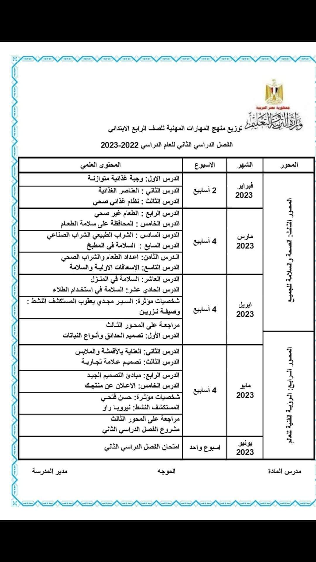 تحميل توزيع منهج المهارات المهنية للصف الرابع الابتدائي الفصل الدراسي الثاني 2023