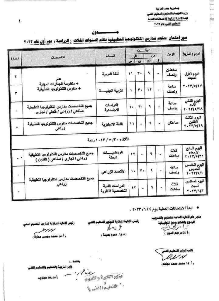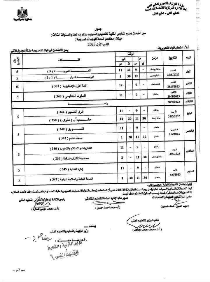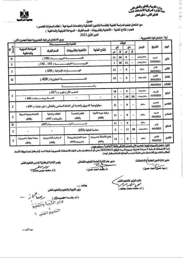 تحميل جداول امتحانات الدبلومات الفنية 2023 كل التخصصات تجاري و صناعي و زراعي و فندقي