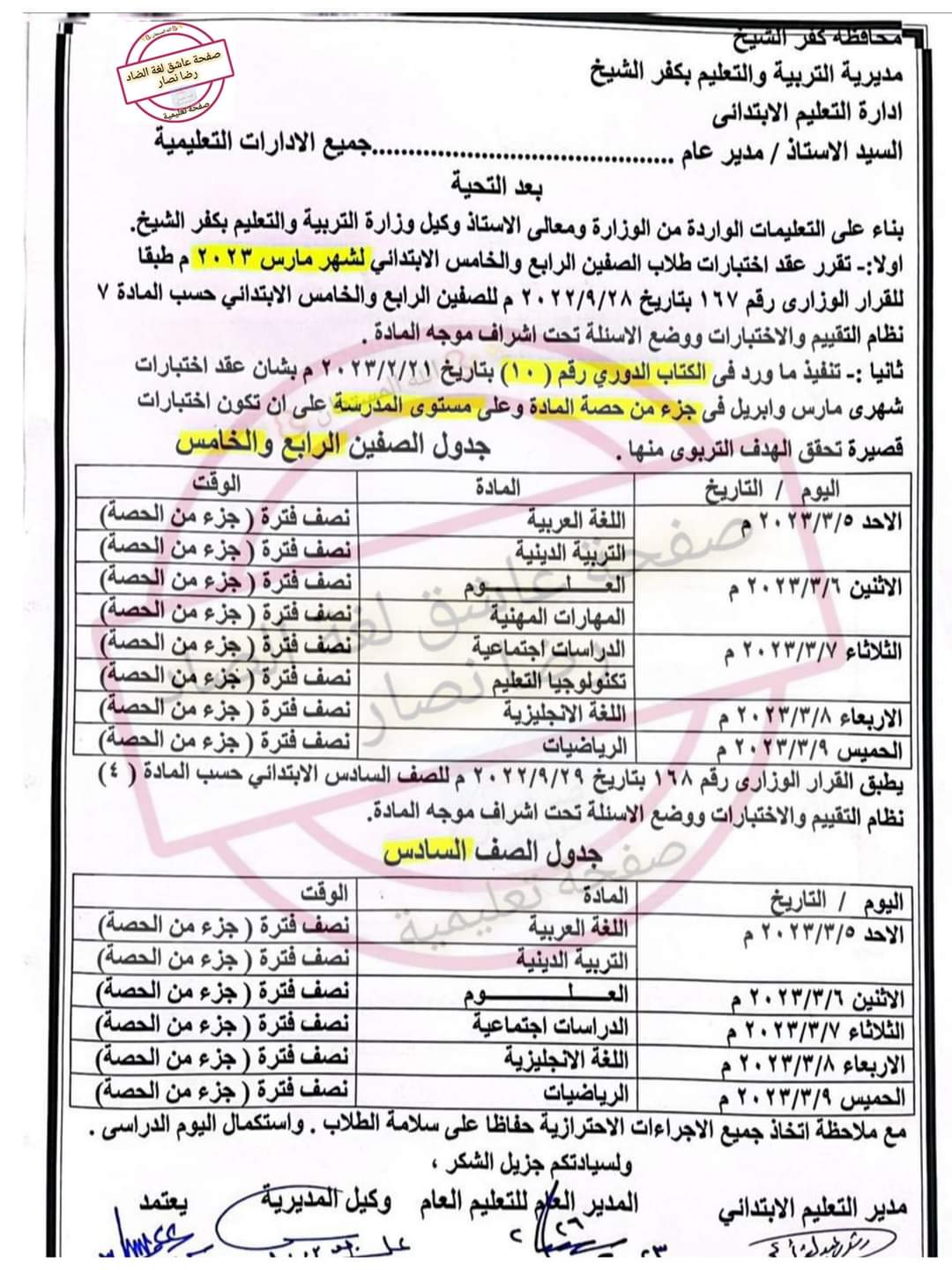 تحميل جدول امتحانات فبراير الصفين الرابع والخامس الابتدائي 2023