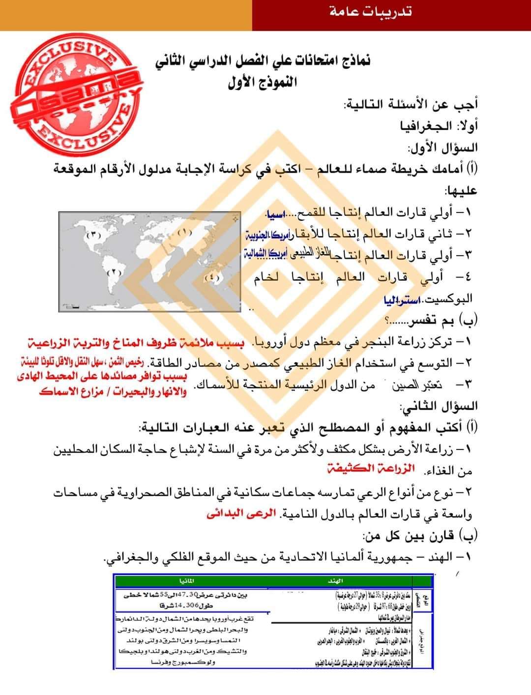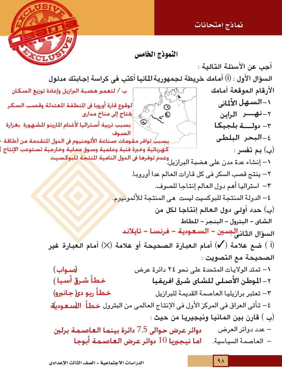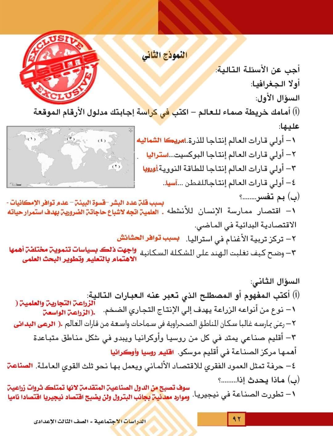 تحميل اجابات نماذج امتحانات الكتاب المدرسي دراسات تالتة اعدادي الترم الثاني 2023