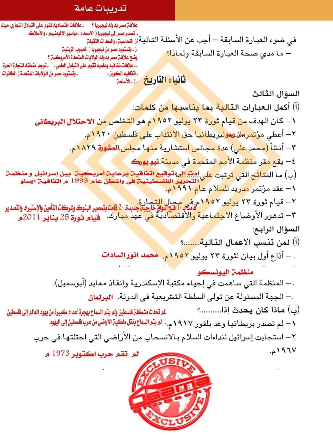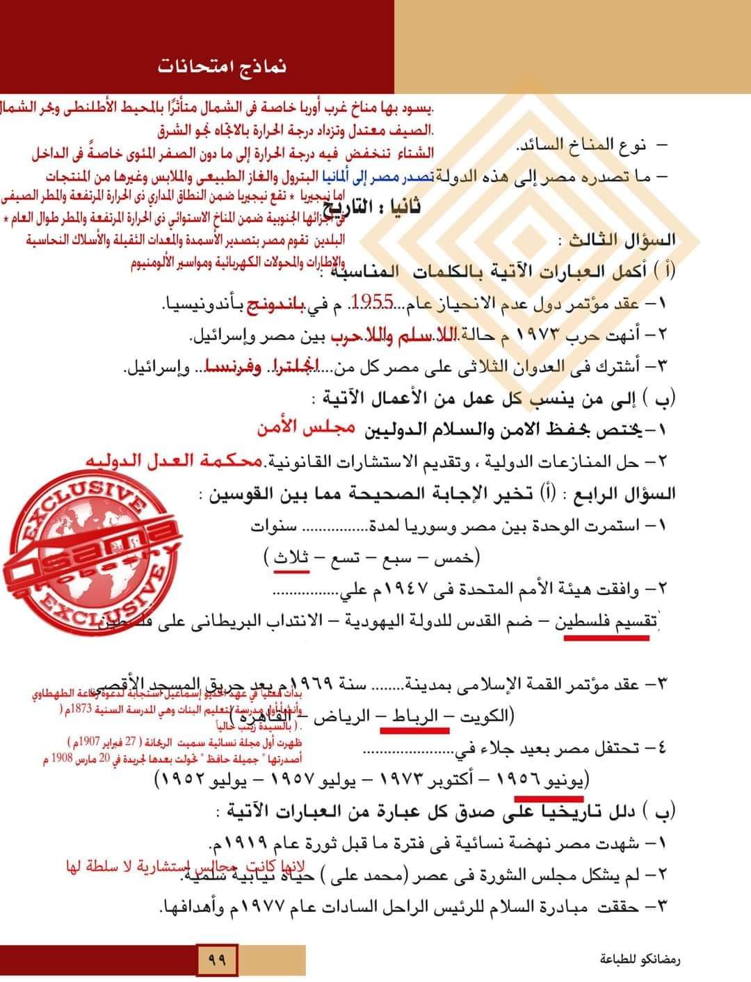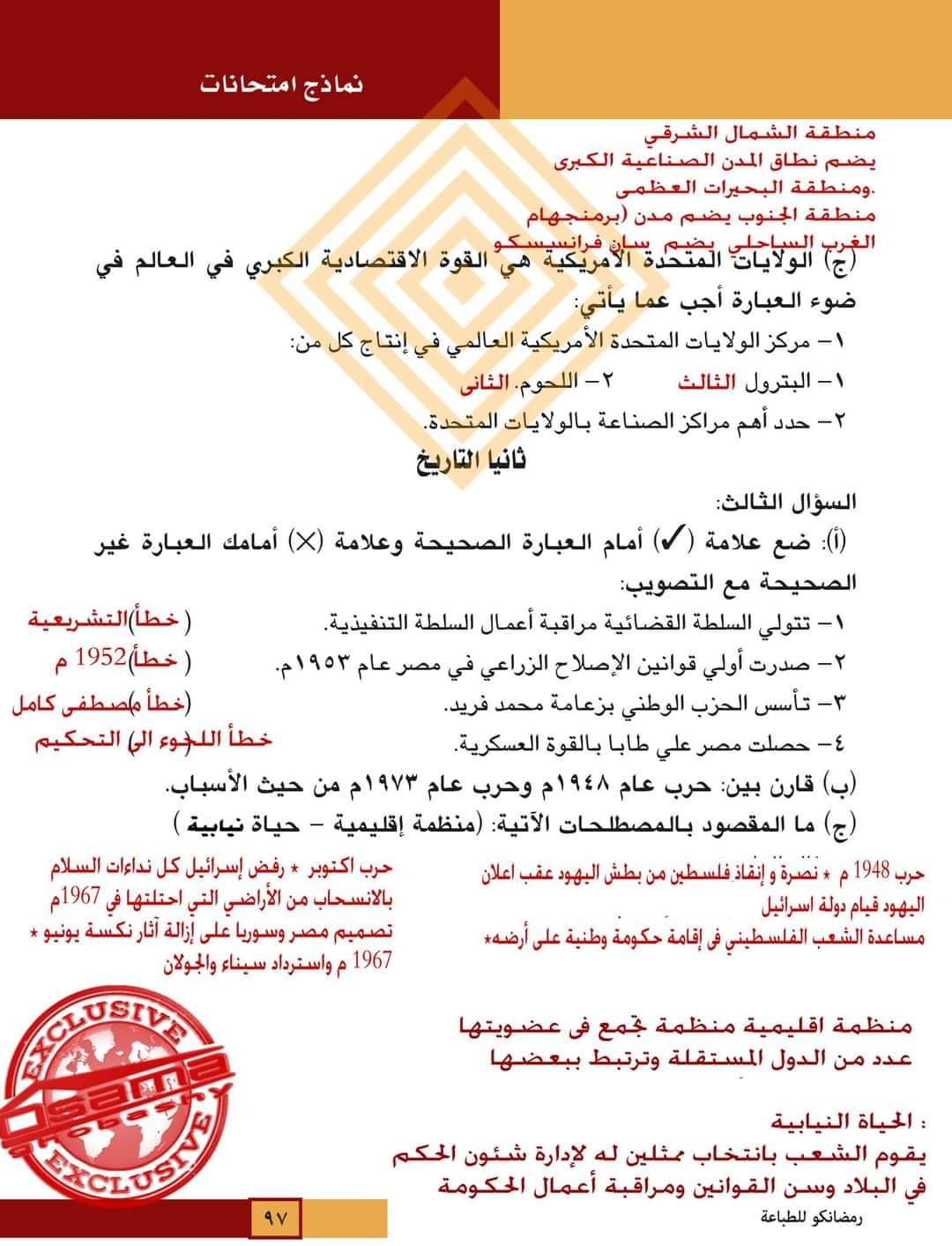 تحميل اجابات نماذج امتحانات الكتاب المدرسي دراسات تالتة اعدادي الترم الثاني 2023
