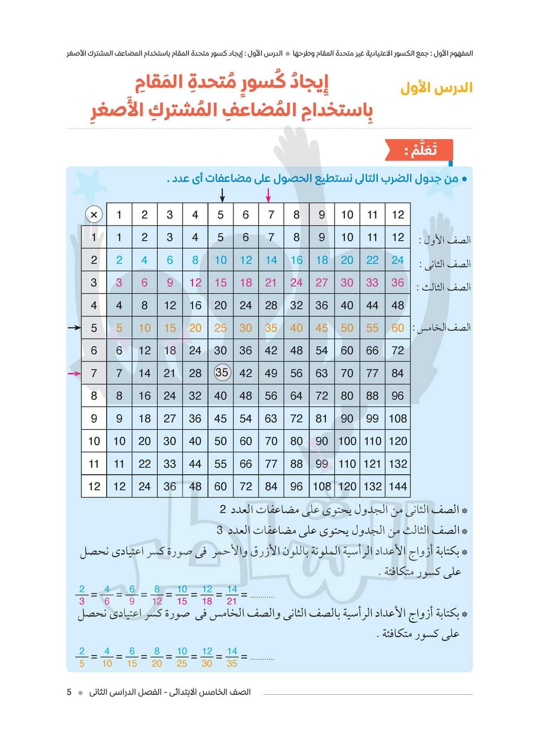 شرح الدرس الاول رياضيات الصف الخامس الابتدائي الترم الثاني 2023