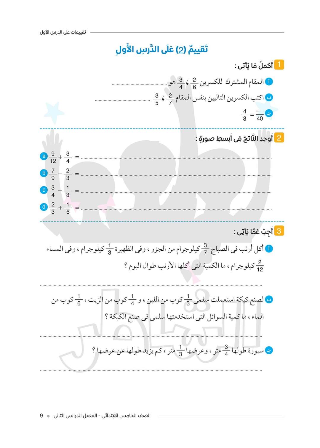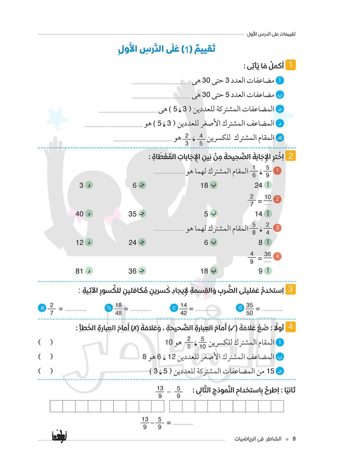 الدرس الأول من كتاب الشاطر لمادة الرياضيات -الصف الخامس الابتدائي – الفصل الدراسي الثاني 2023