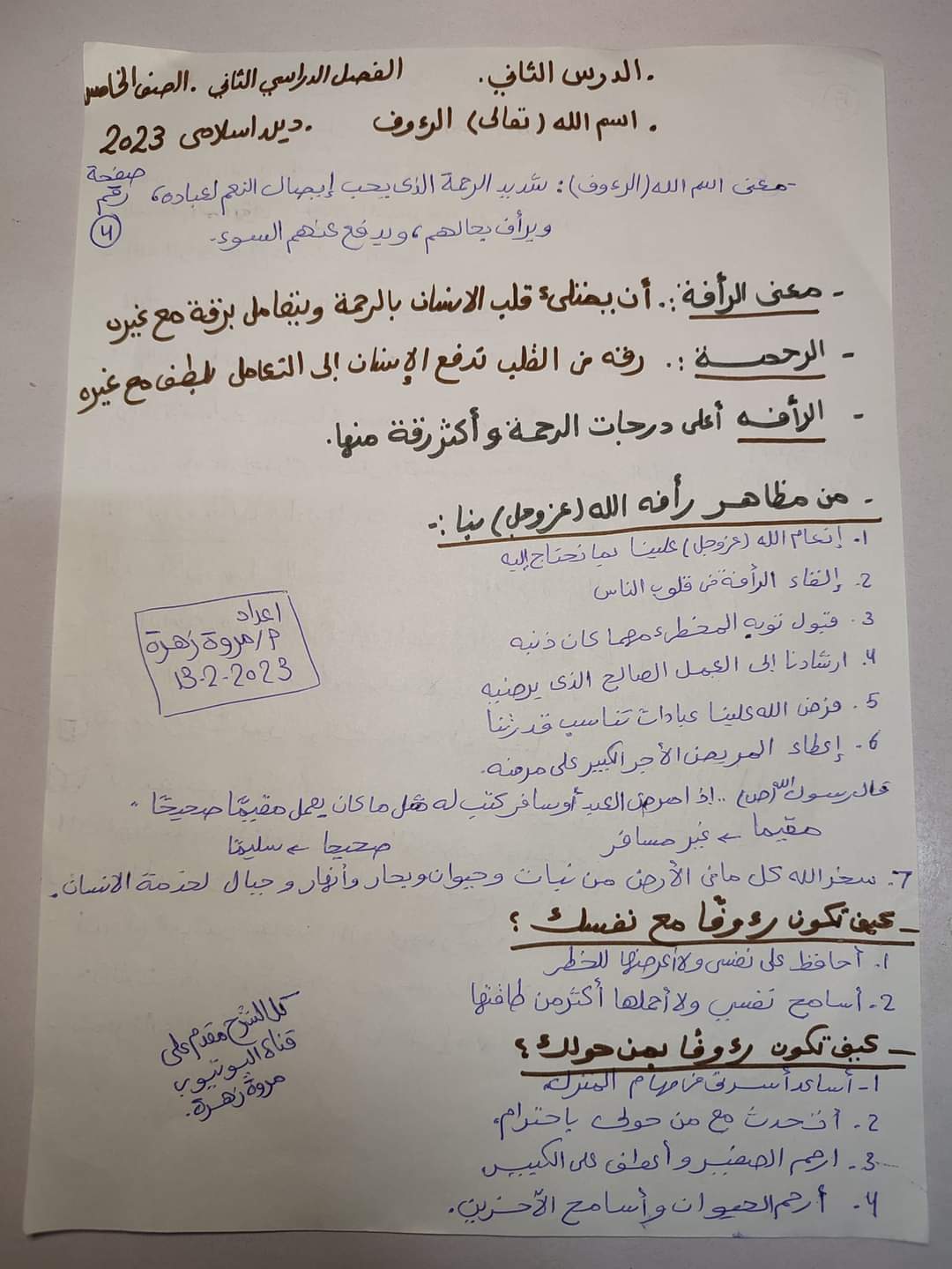 تحميل شرح الدرس الاول والثاني تربية اسلامية خامسة ابتدائي الترم الثاني 2023