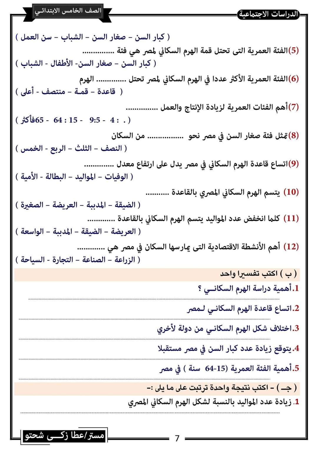 تدريبات على الدرس الثالث دراسات خامسة ابتدائي الترم الثاني 2023