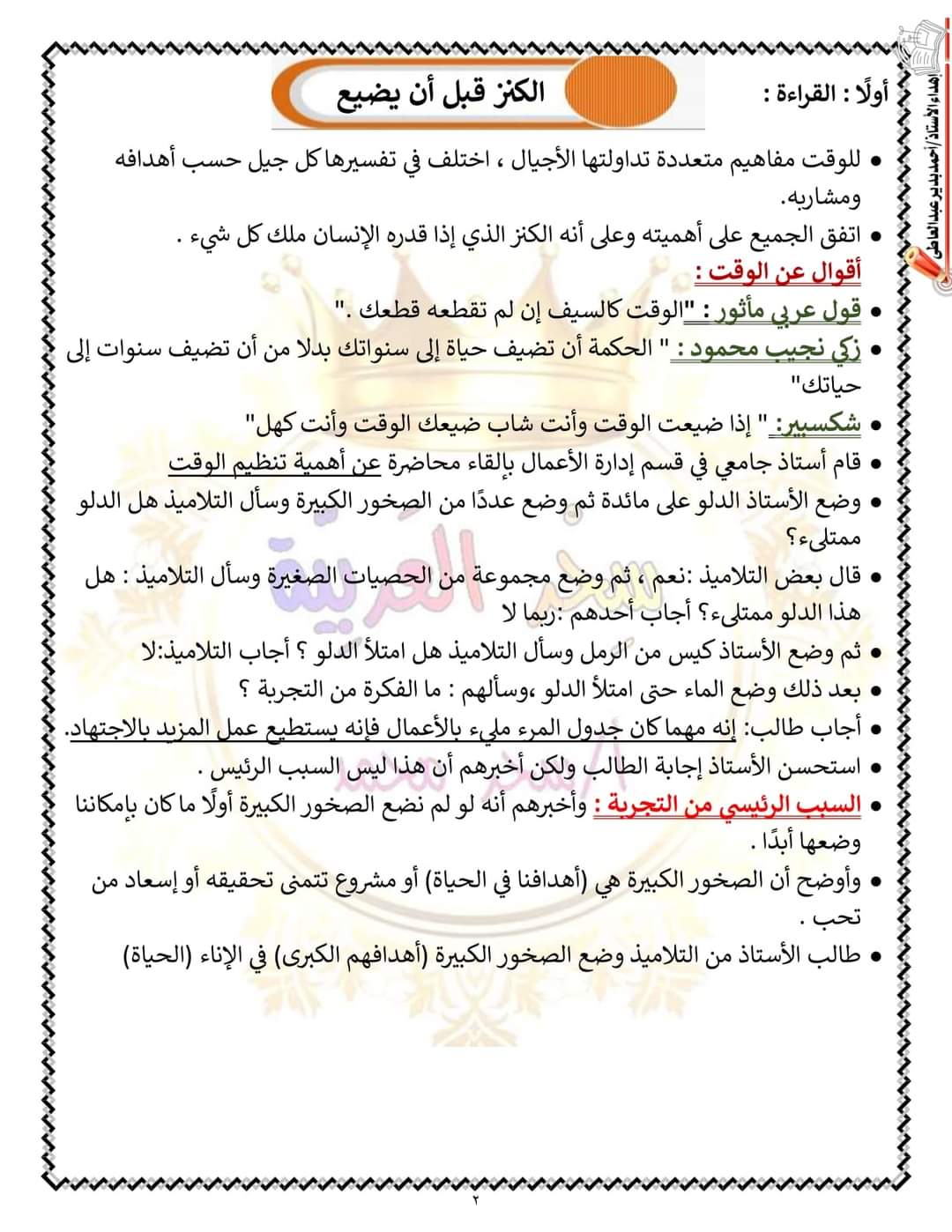 لغة عربية الصف الثاني الإعدادي الفصل الدراسي الثاني ٢٠٢٣