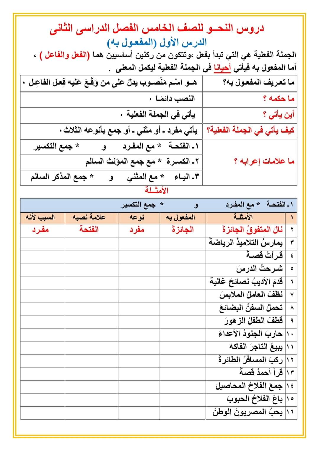 تحميل مذكرة تدريبات النحو الصف الخامس الابتدائي الترم الثانى 2023 مستر محمد السيد