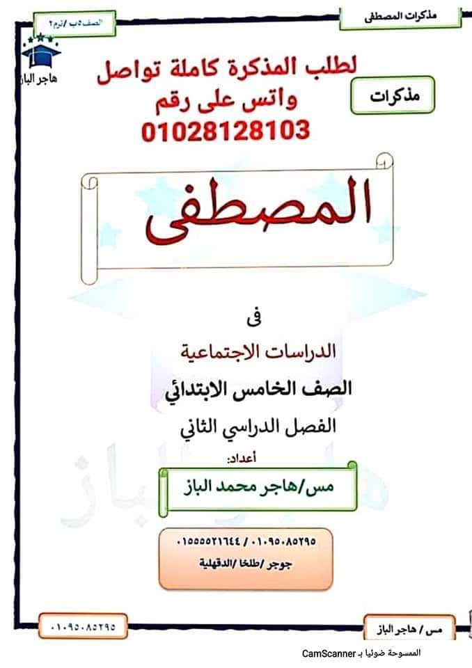 تحميل مذكرة مراجعة ليلة الامتحان دراسات اجتماعية الصف الخامس الابتدائي الترم الثاني 2023 pdf