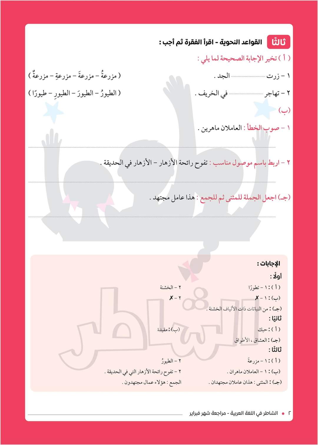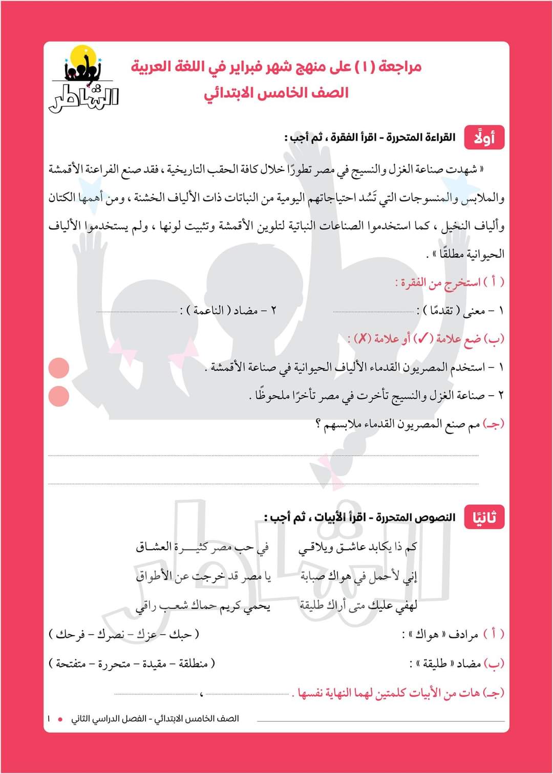 مراجعة (٢) على منهج شهر فبراير في مادة اللغة العربية للصف الخامس الابتدائي.