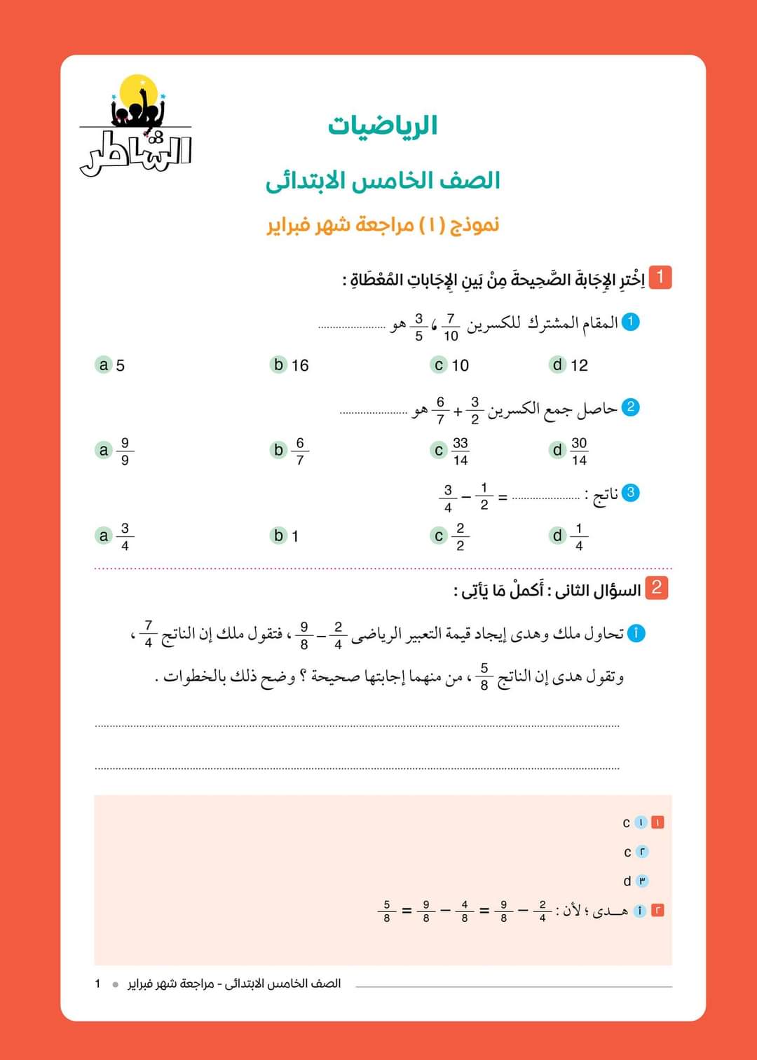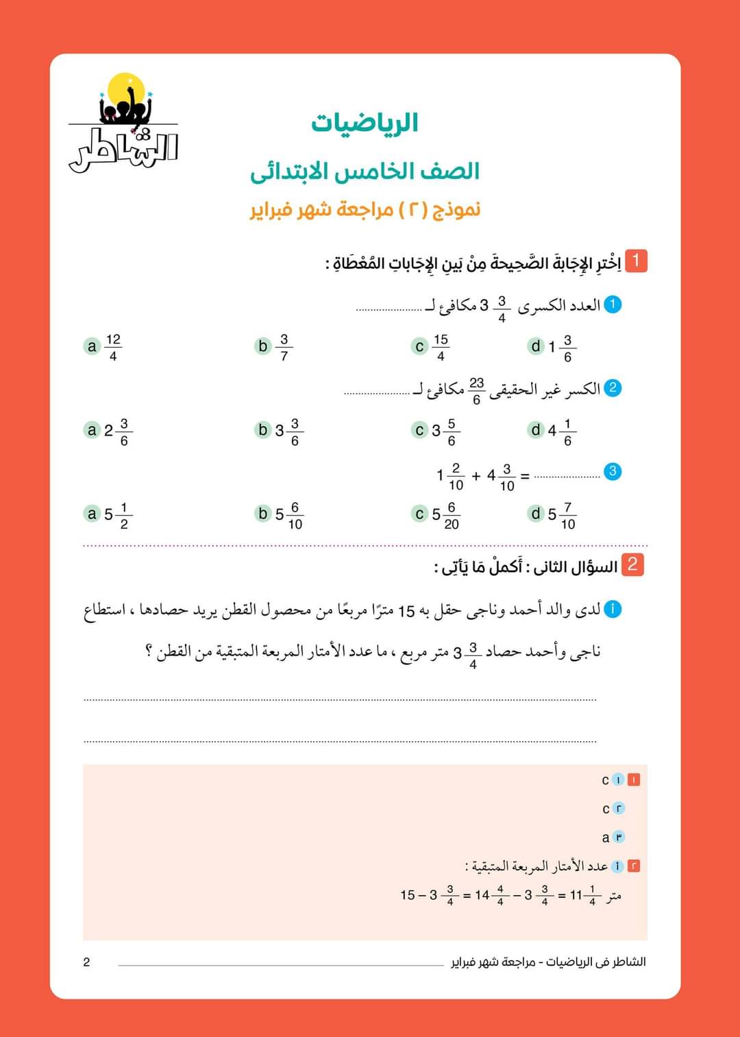 تحميل مراجعة على منهج فبراير في الرياضيات الصف الخامس الابتدائي 2023