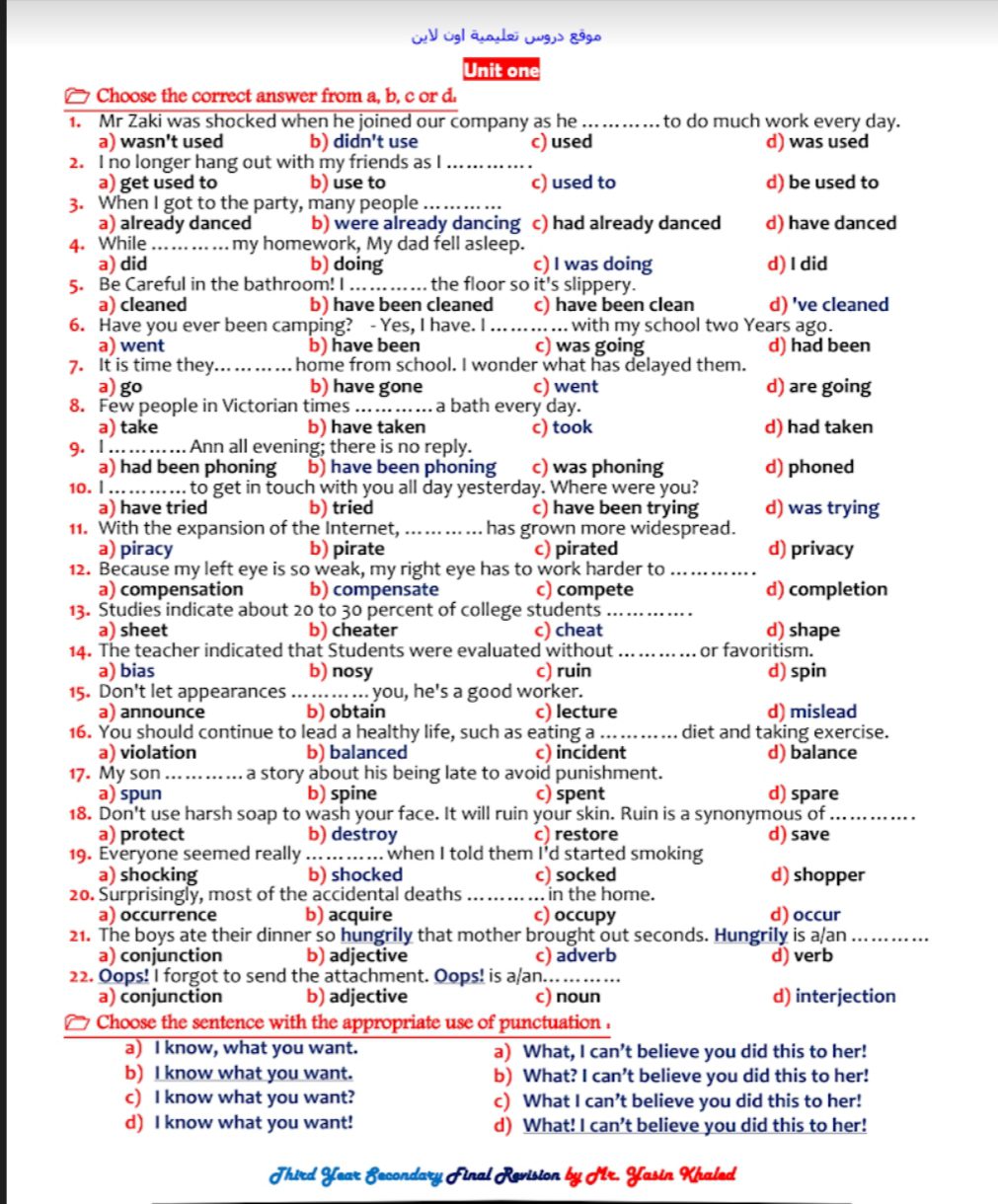 تحميل اجابة جميع الوحدات من الاولى الى الثانية عشر pdf