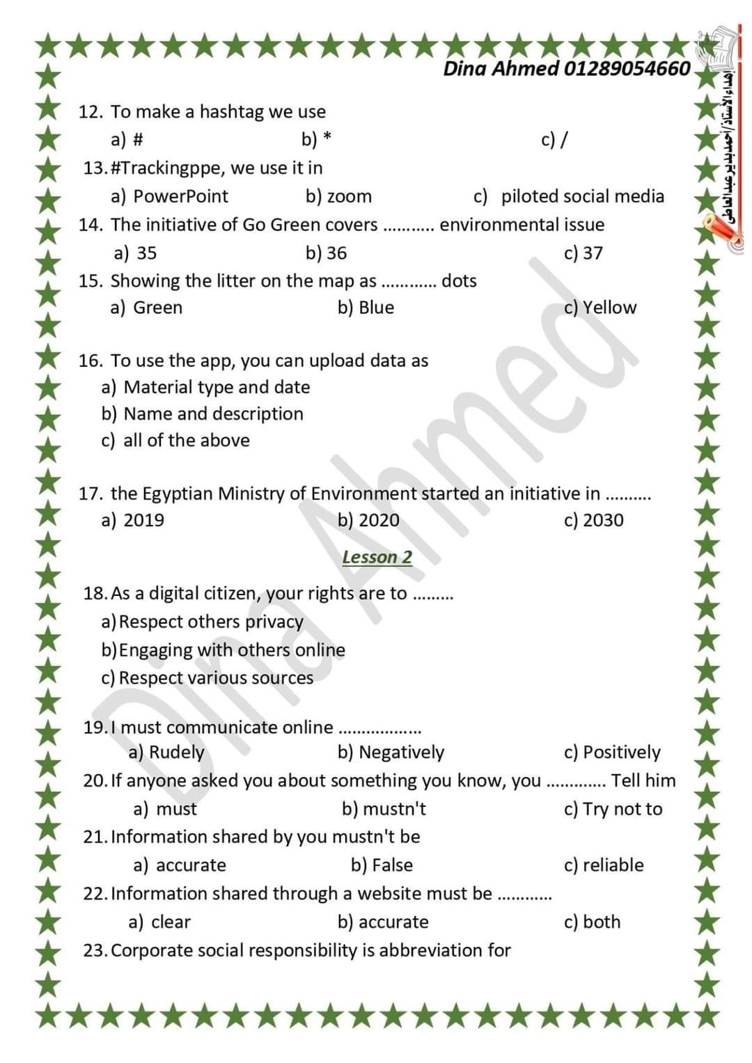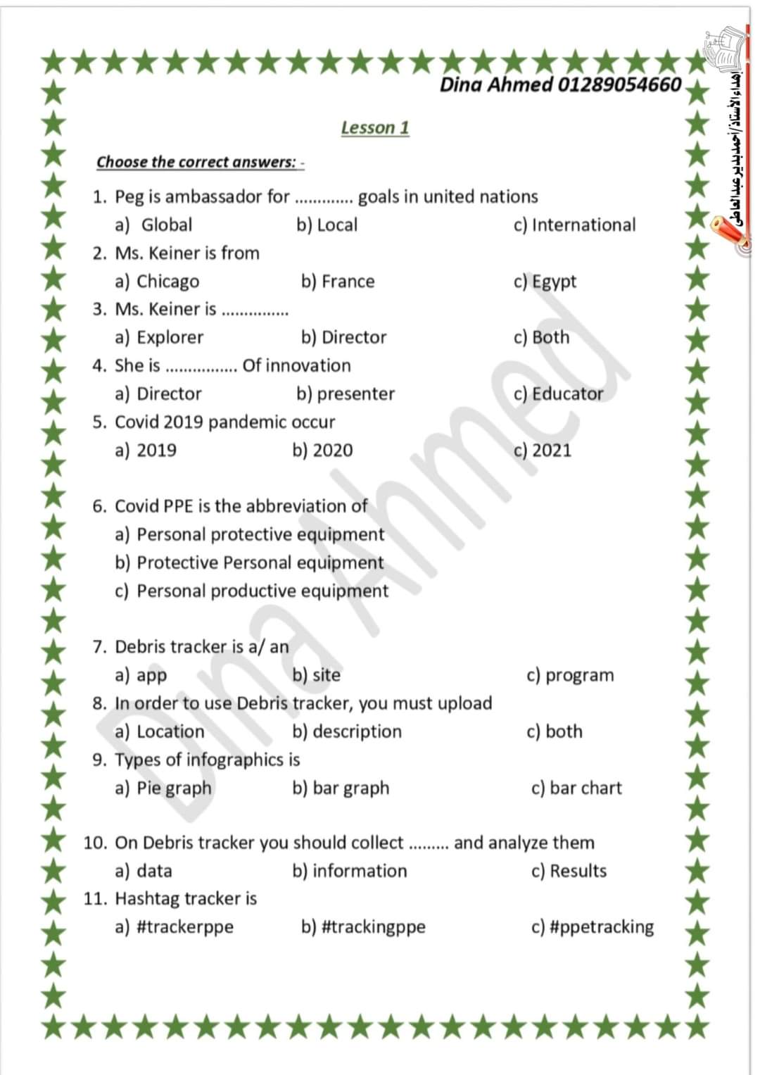 إعداد مس/ دينا أحمد جزاها الله خيرًا ،، رابط للطباعة هنا