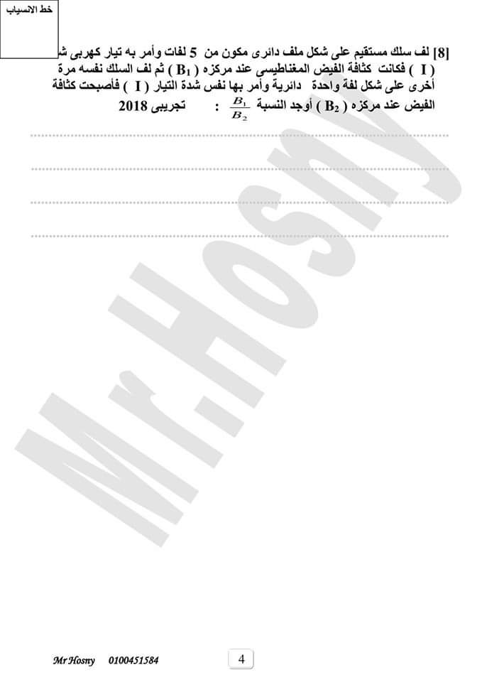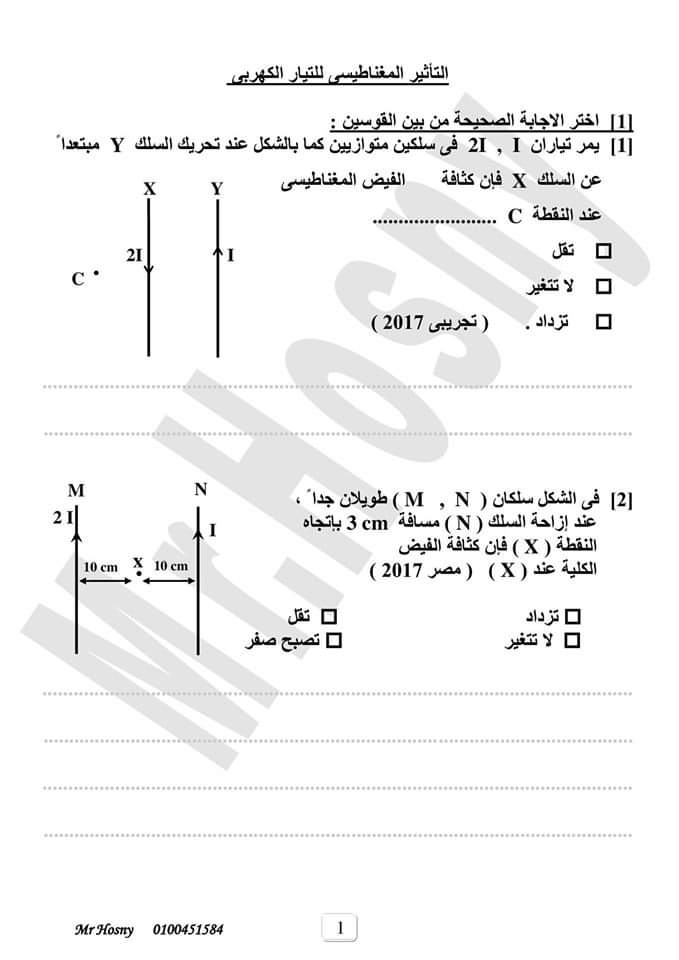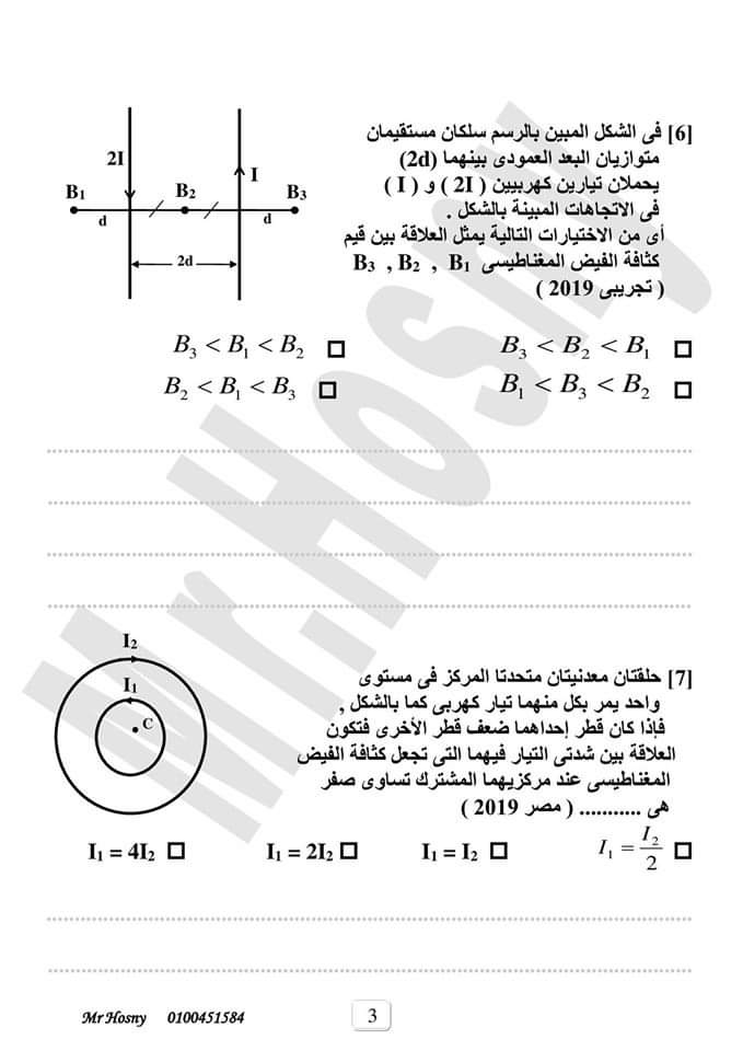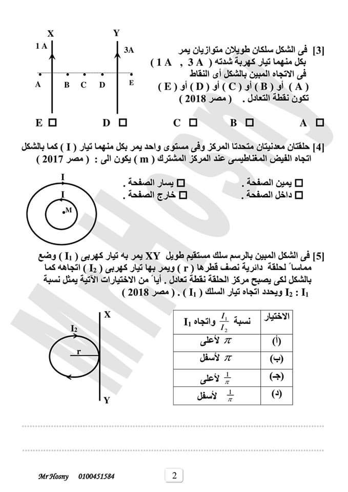 اهم مسائل التأثير المغناطيسى للتيار الكهربى فيزياء الصف الثالث الثانوي