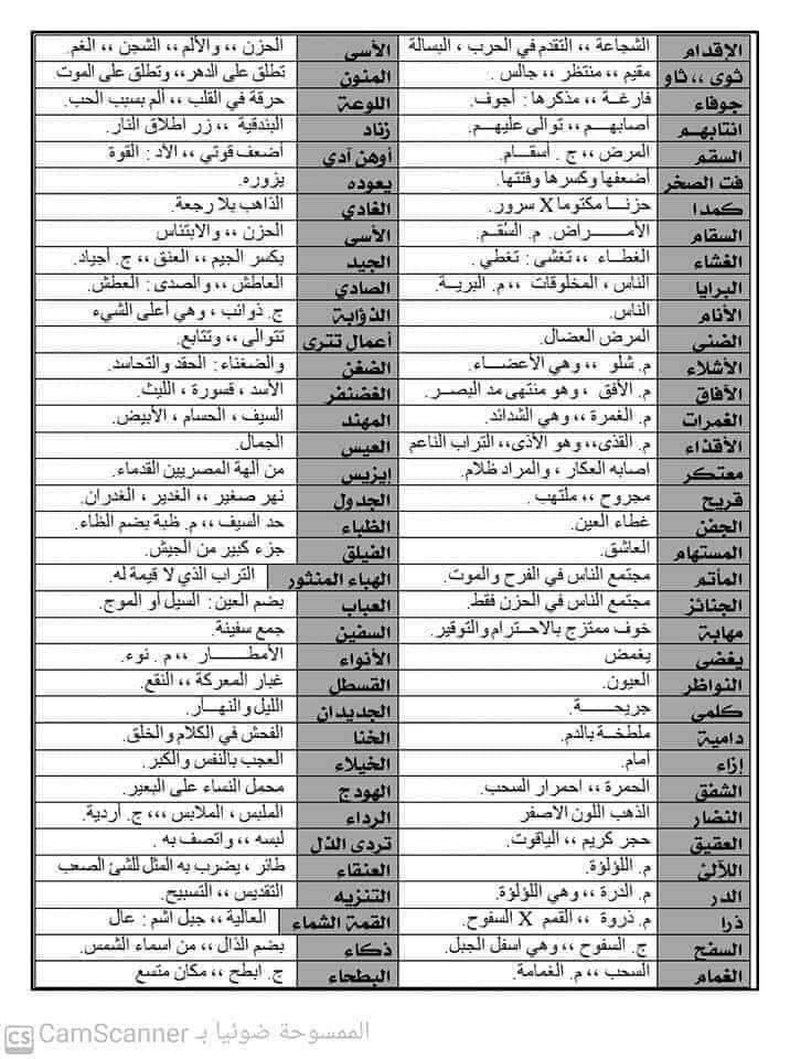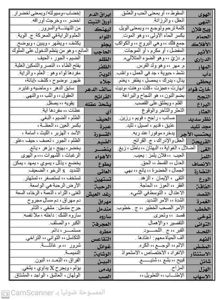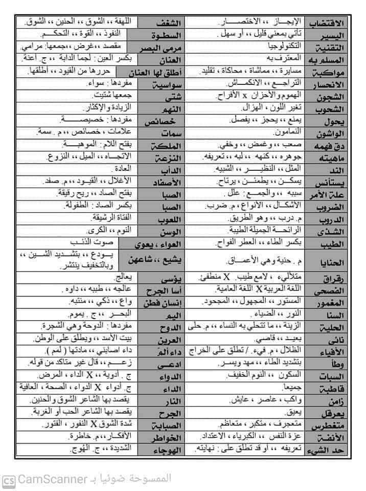 تحميل معجم أهم معاني الكلمات المتوقعة الصف الثالث الثانوي 2023