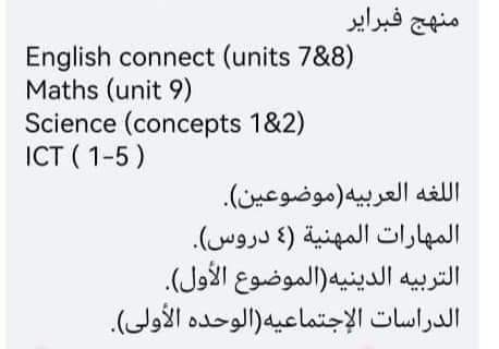 مقرر اختبارات فبراير كل مواد الصف الرابع الابتدائي الترم الثانى 2023