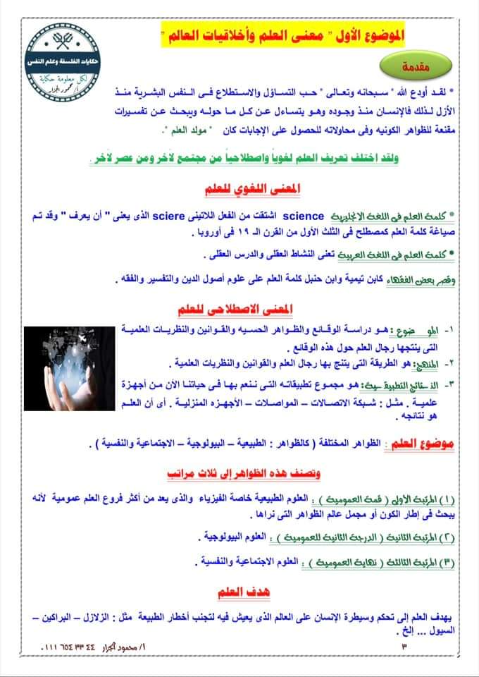 تحميل ملخص الفصل الاول فلسفة الصف الاول الثانوي الترم الثاني 2023
