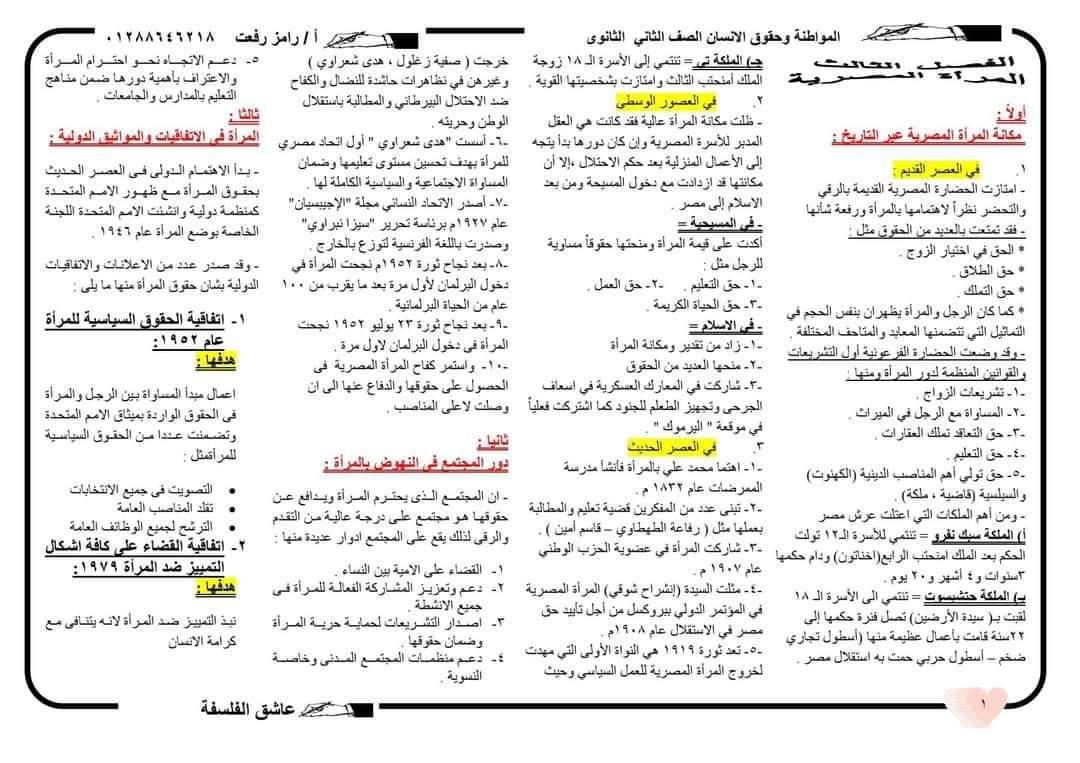 تحميل ملخص المواطنة الصف الثاني الثانوي الترم الثاني 2023