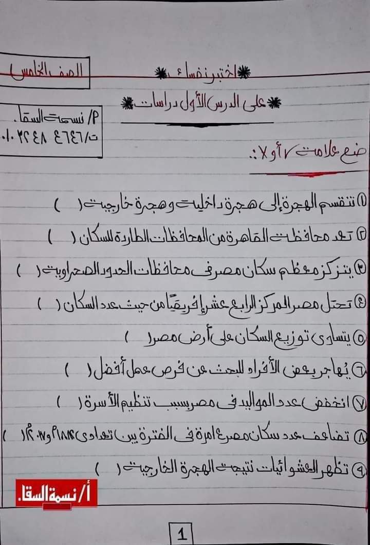 تحميل ملخص اهم اسئلة الدرس الاول دراسات خامسة ابتدائي الترم الثانى 2023