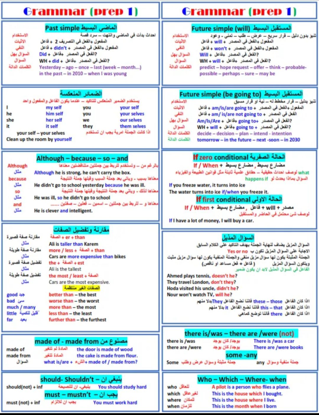 تحميل ملخص جرامر الصف الاول الاعدادي الترم الثاني 2023 في ورقة واحدة