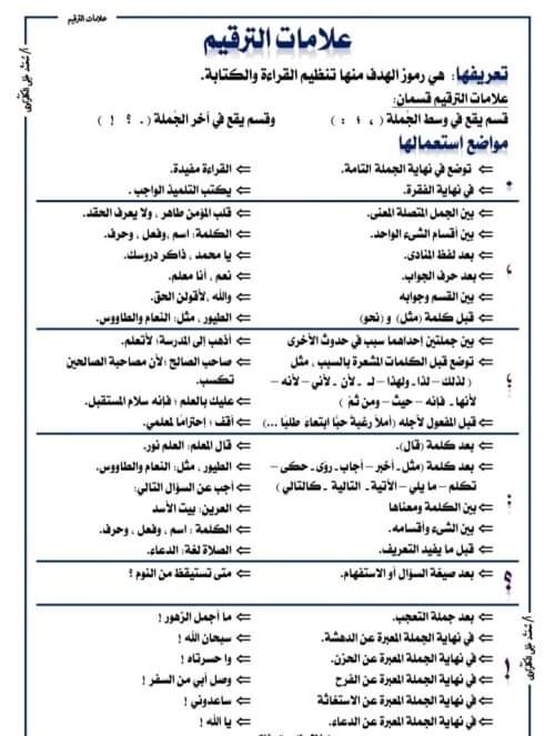 تحميل ملخص علامات الترقيم للصفين الرابع والخامس الابتدائي في ورقة واحدة
