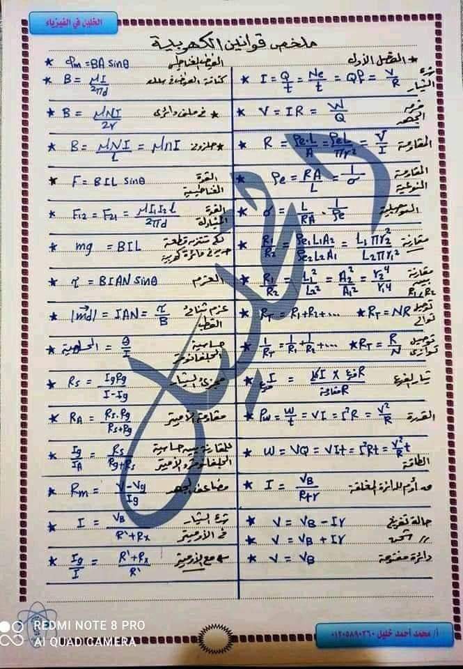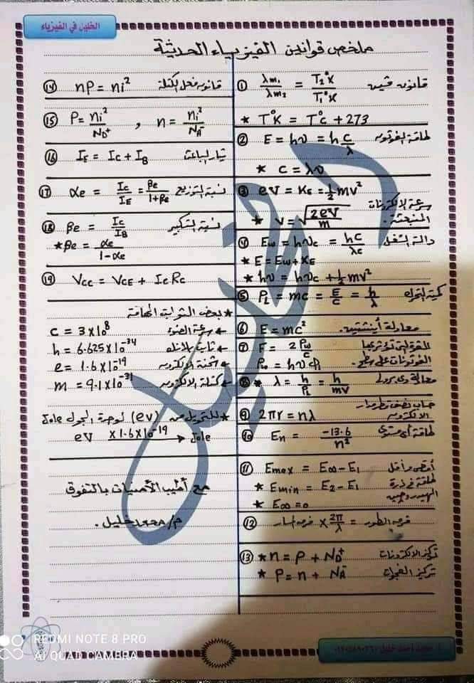تحميل ملخص قوانين الفيزياء الصف الثالث الثانوي 2023 في 3 ورقات