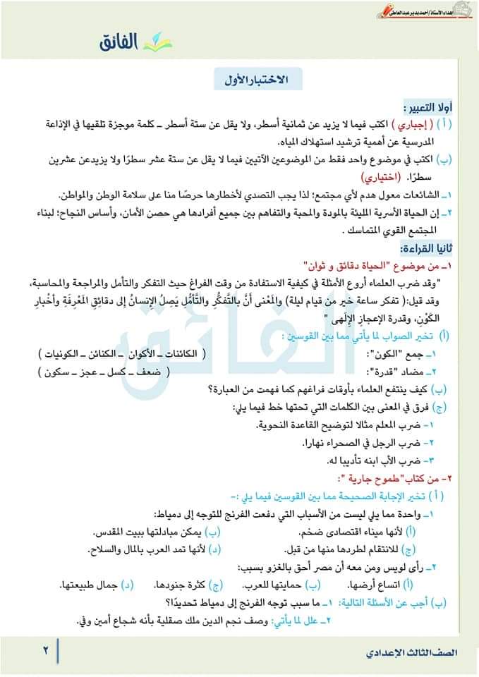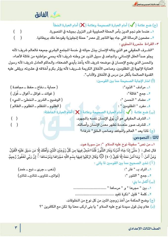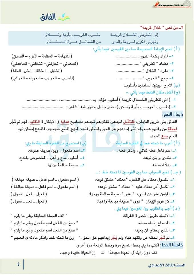 تحميل مراجعة لغة عربية الصف الثالث الاعدادي مقرر فبراير 2023