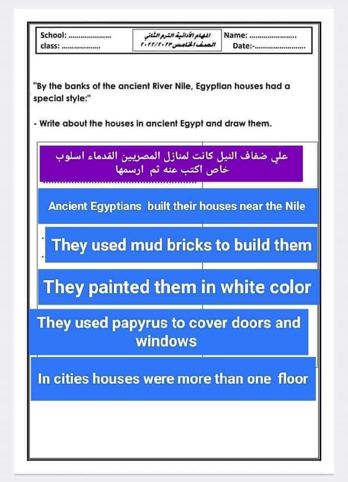 المهام الأدائية بتكون علي الدروس اللي درسها الطالب في كل وحدة بتلاقي حاجة مهمة ممكن يكون عن وصف منزل Describing your house
