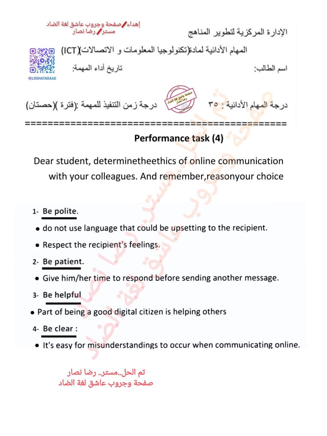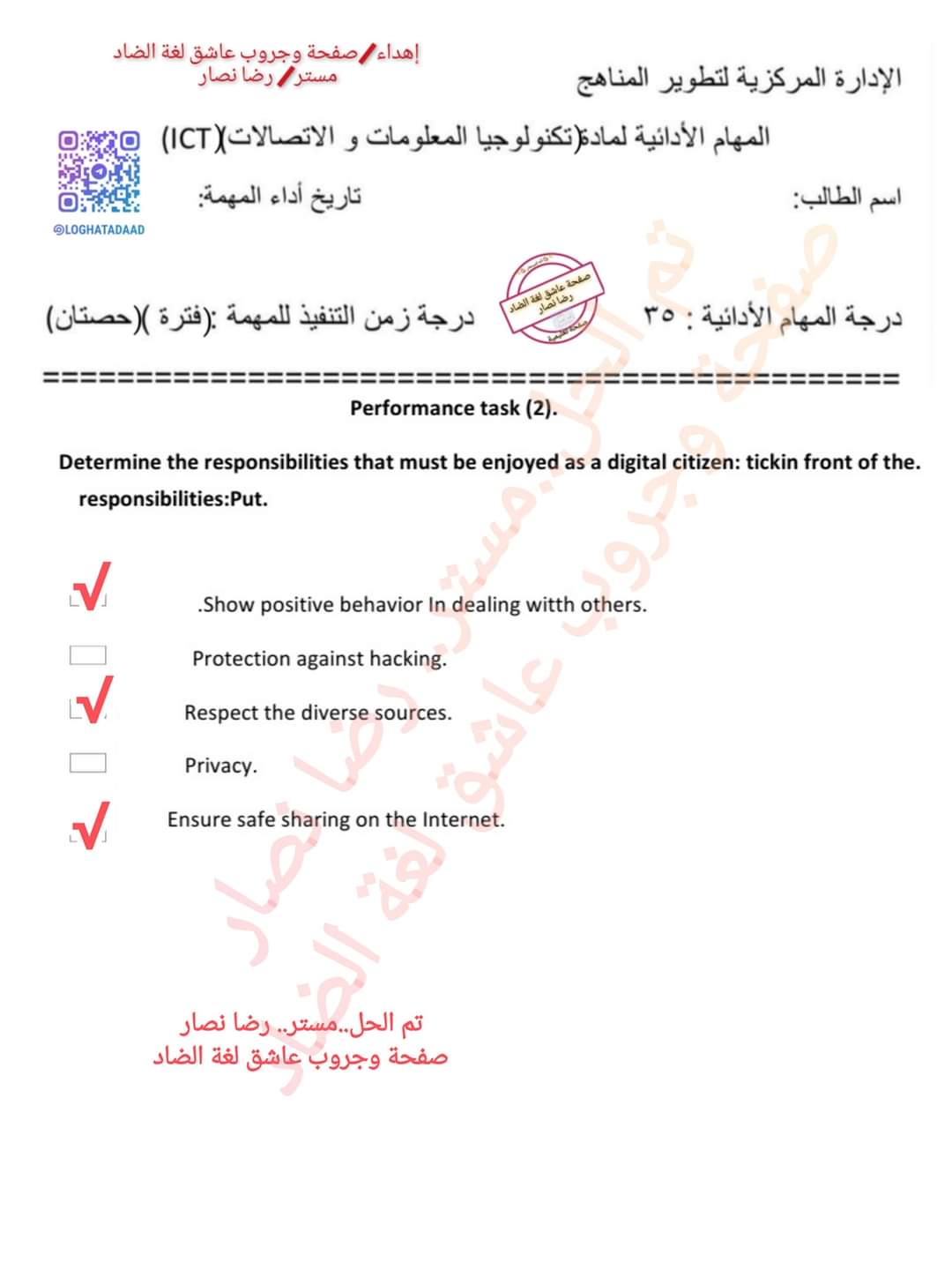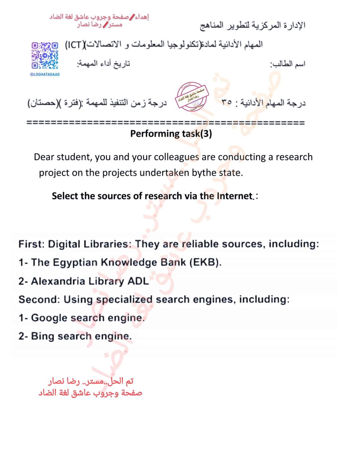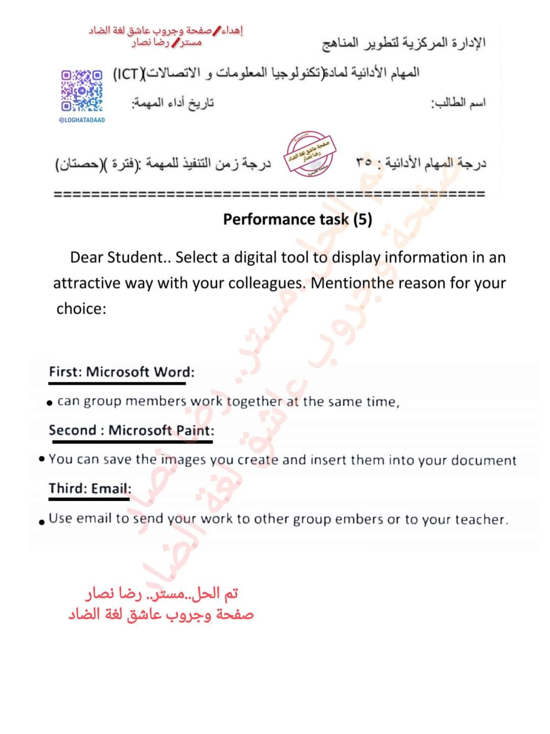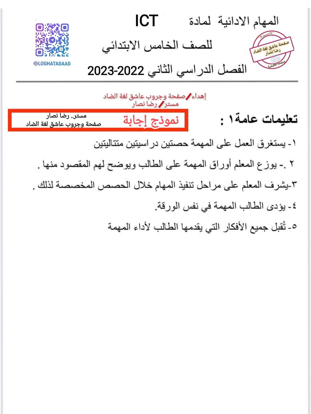 اجابة المهام الادائية الرسمية ICT تكنولوجيا خامسة ابتدائي لغات الترم الثاني 2023