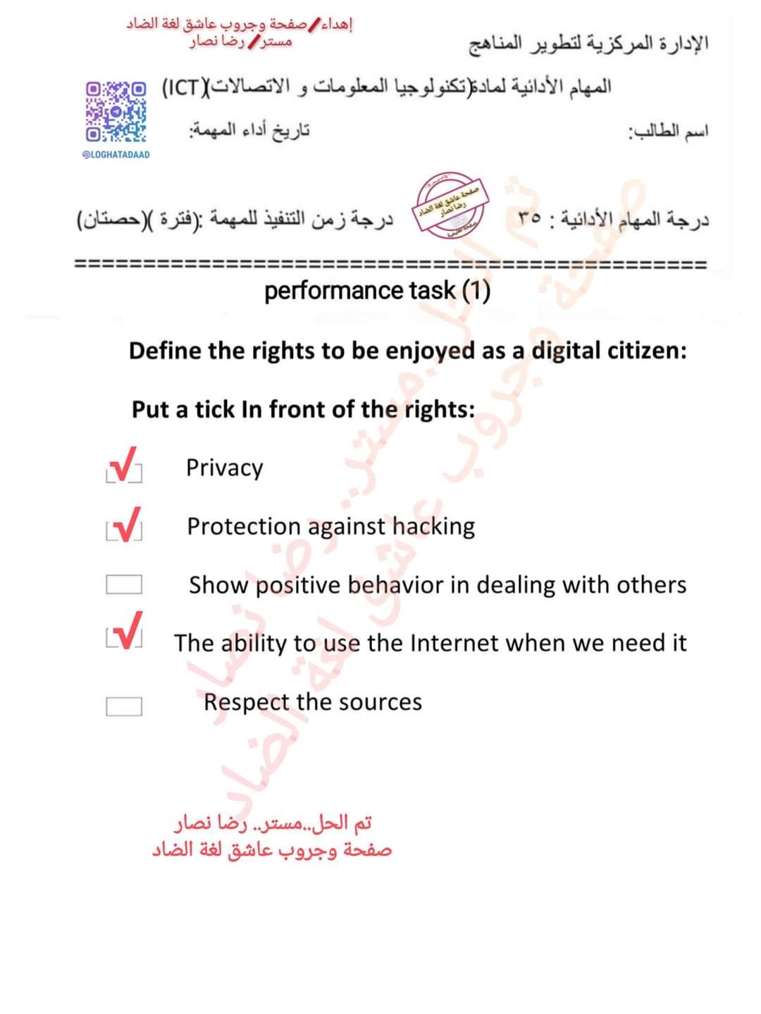 تحميل اجابة المهام الادائية الرسمية ICT تكنولوجيا خامسة ابتدائي لغات الترم الثاني 2023