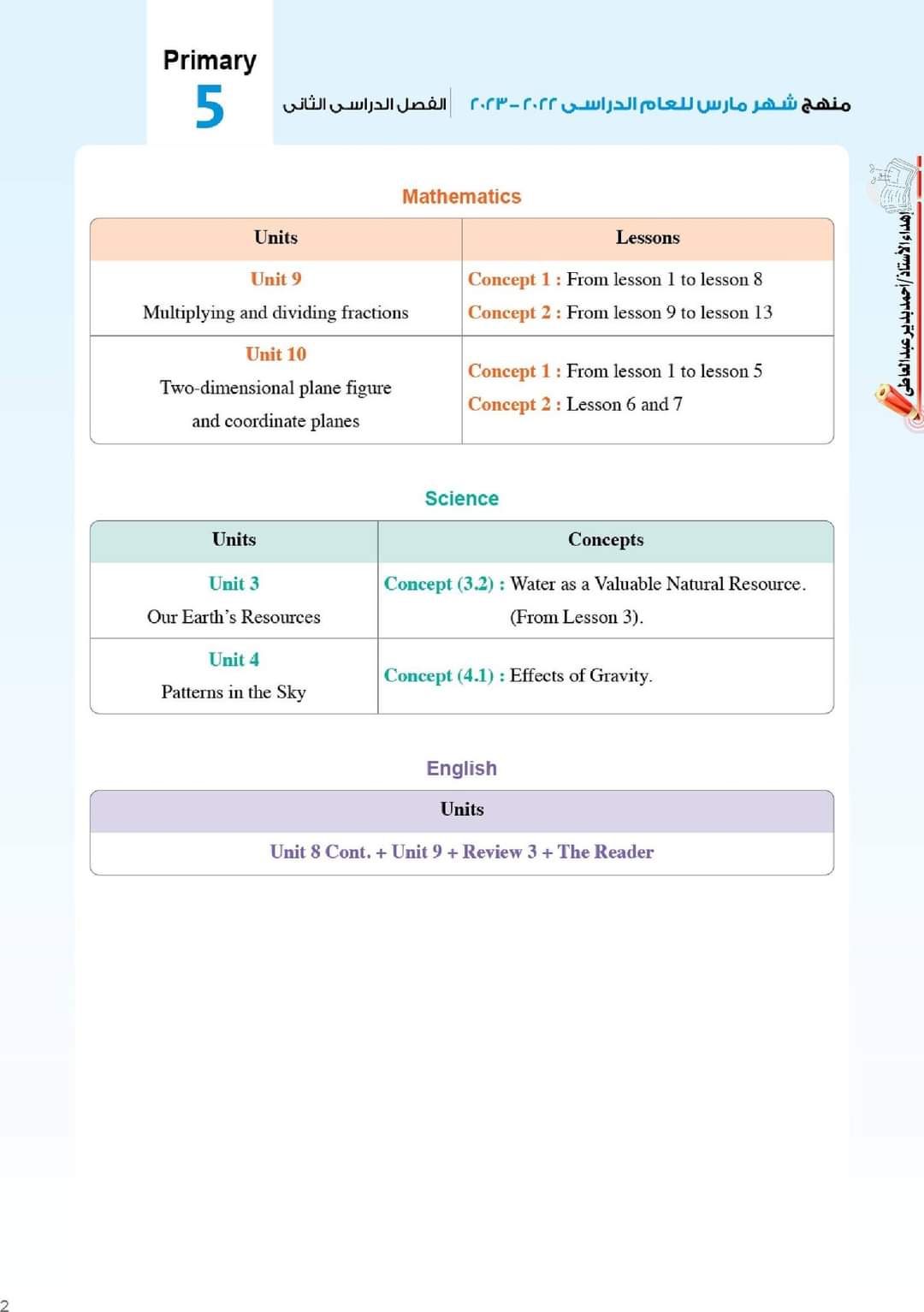 اختبارات مارس بالإجابة ماث ساينس كونكت للصف الخامس