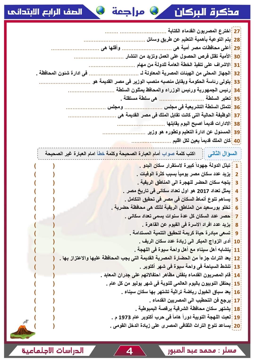 تحميل اقوى مراجعة دراسات الصف الرابع الابتدائي مقرر فبراير