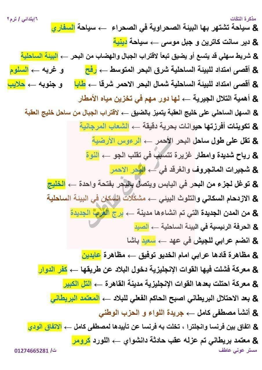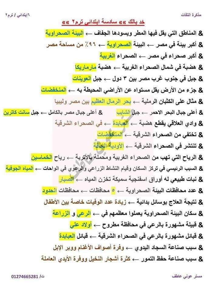 تحميل الاسئلة المتوقعة والمتكررة في امتحان الدراسات للصف السادس الابتدائي الترم الثاني بالاجابات