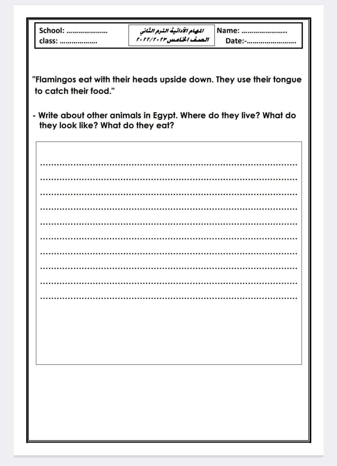 المهام الادائية لغة انجليزية الصف الخامس الابتدائي الترم الثاني