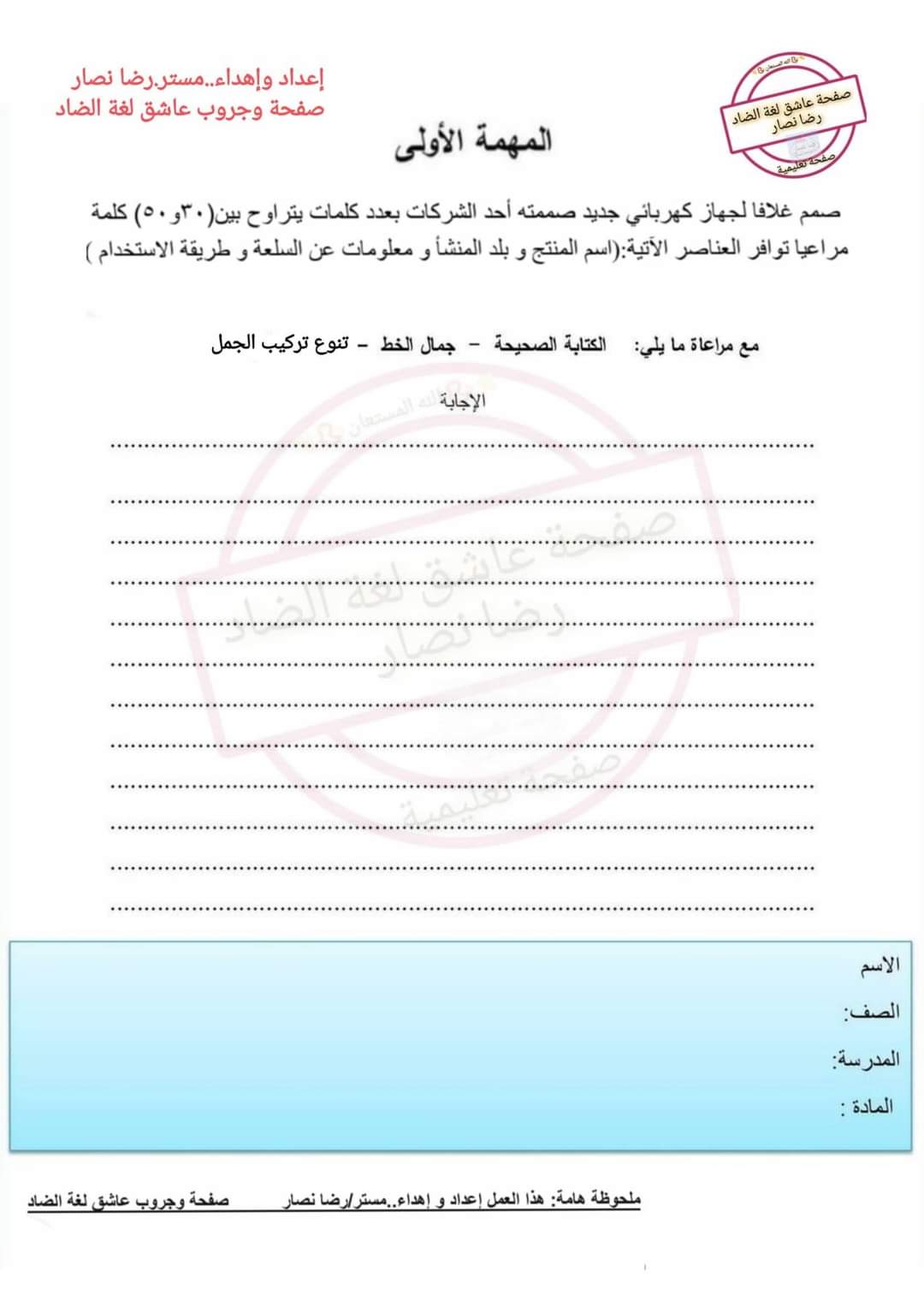 من إعداد الصفحة وغير تابعة للوزارة بنفس الشكل ، شاملة كل أجزاء المنهج…