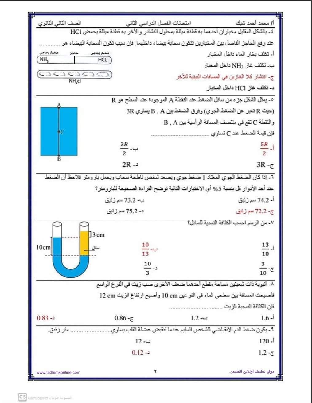 تحميل امتحانات فيزياء للصف الثاني الثانوي الترم الثاني 2023