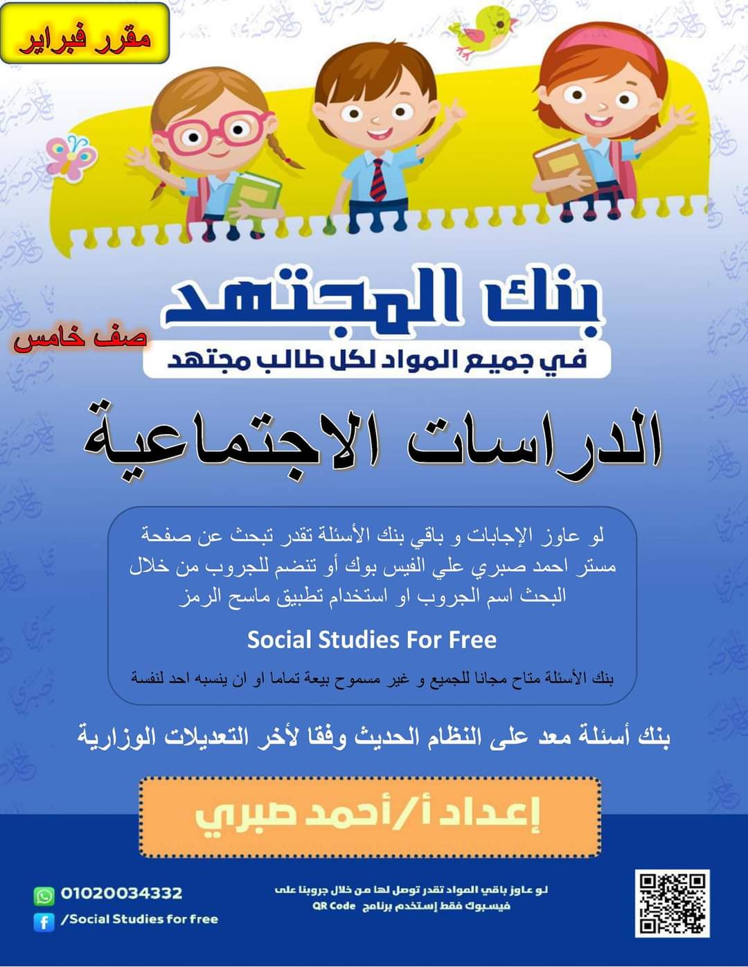 تحميل بنك أسئلة الوحدة الأولى دراسات الصف الخامس الابتدائي الترم الثاني 2023 إعداد مستر أحمد صبري