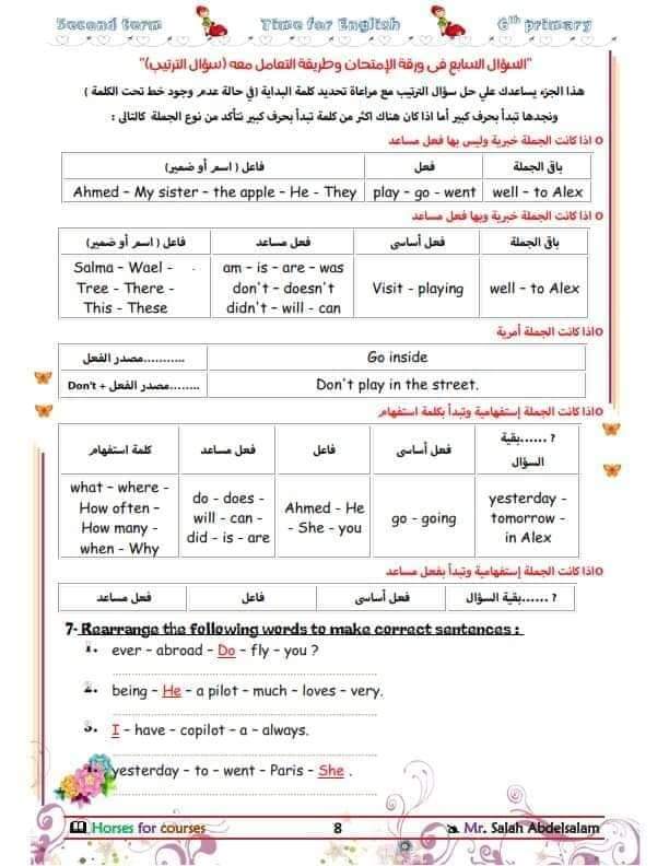 تجميع البراجرافات المقررة على الصف السادس الابتدائى الترم الثاني 2023