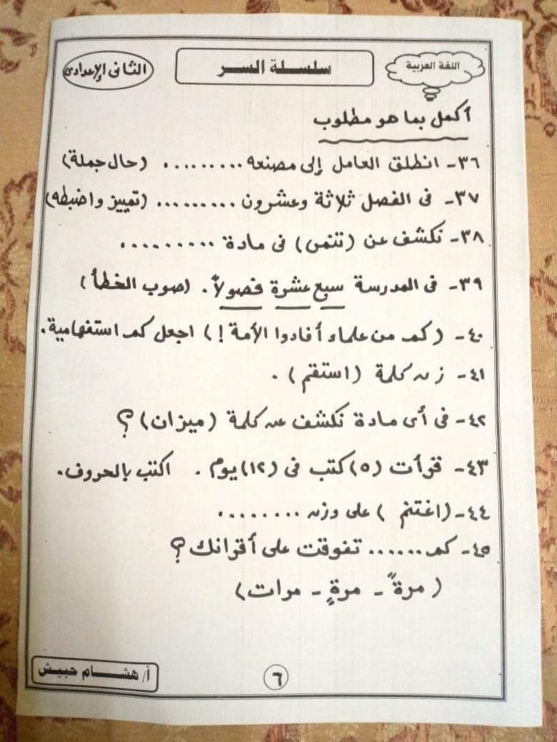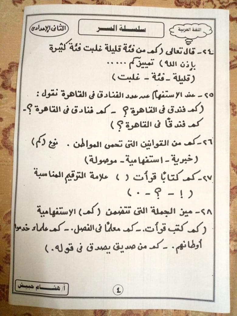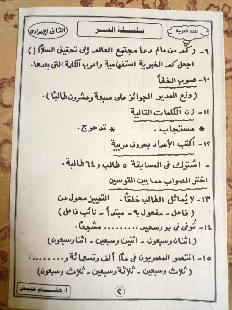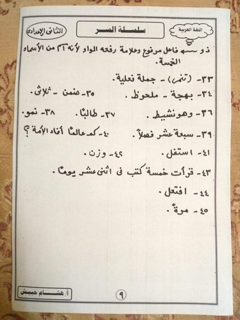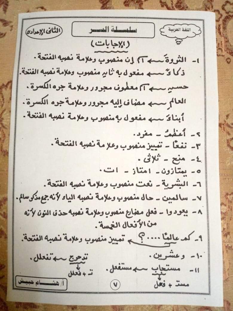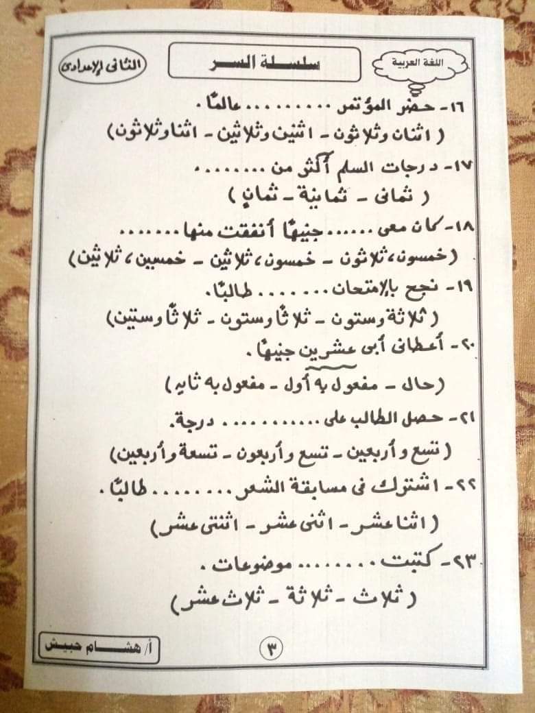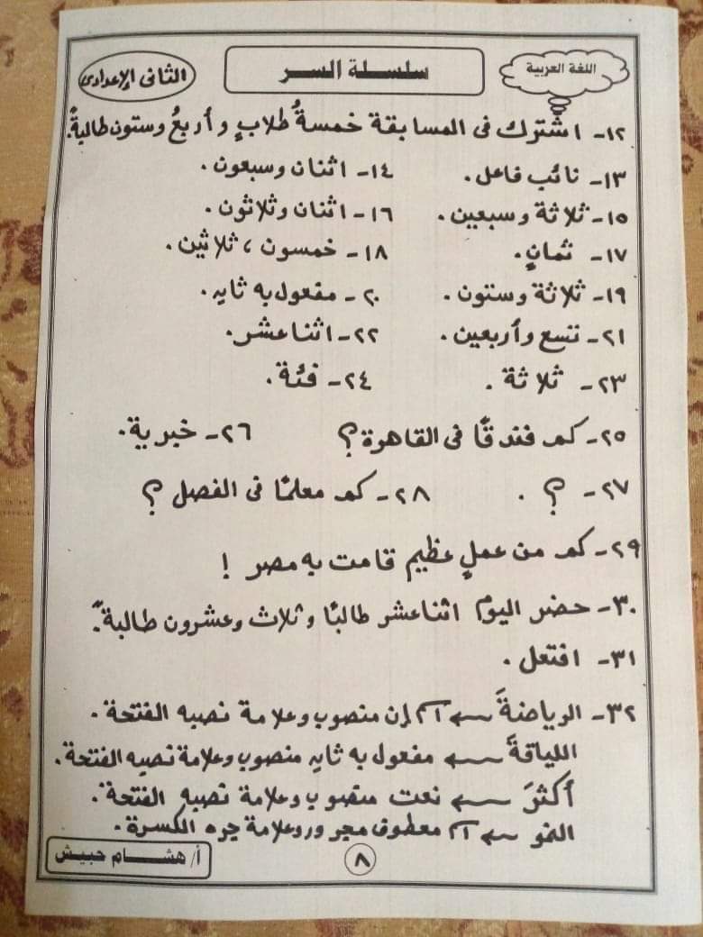 تحميل تدريبات نحوية للصف الثاني الاعدادي الترم الثاني لمستر هشام حبيش