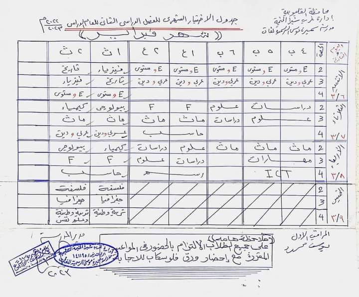 تحميل جدول امتحانات فبراير 2023 لكل الصفوف محافظة القليوبية