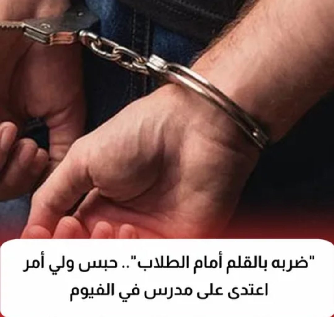 تعليم الفيوم: حبس ولي أمر 4 أيام لحين انتهاء التحقيق بسبب صفعه لمعلم ” ضربه بالقلم على وجهه” أمام طلاب فصله كما وعد ابنه