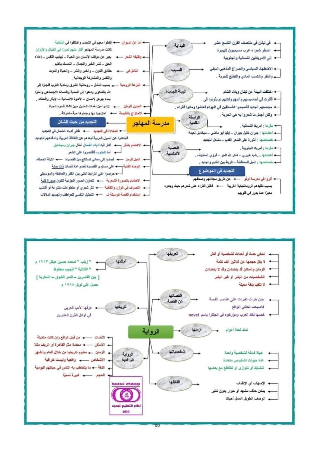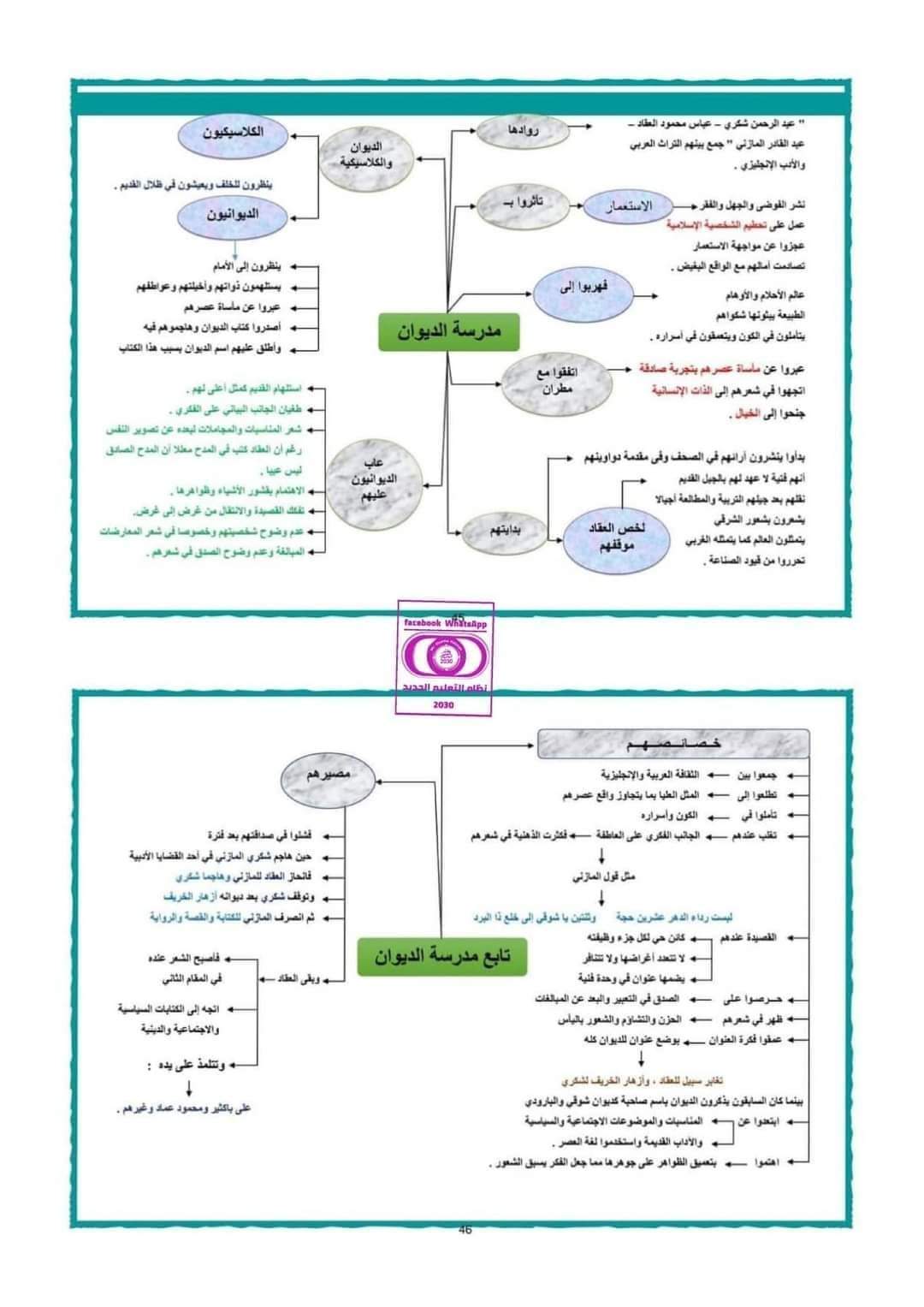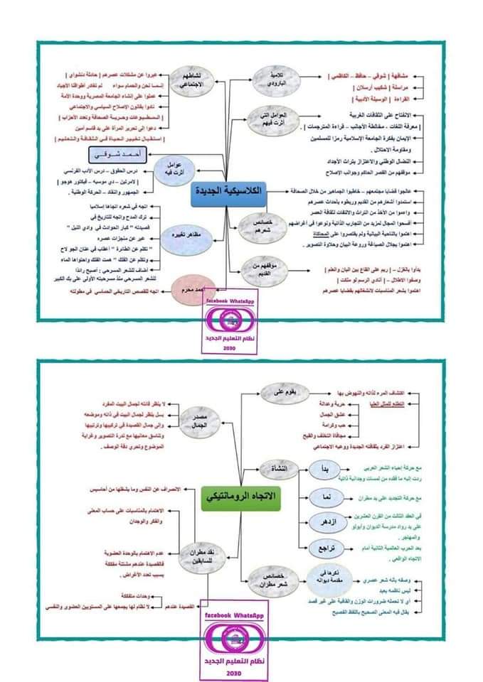 خرائط ذهنية للمدارس الأدبية الصف الثالث الثانوي نظام حديث